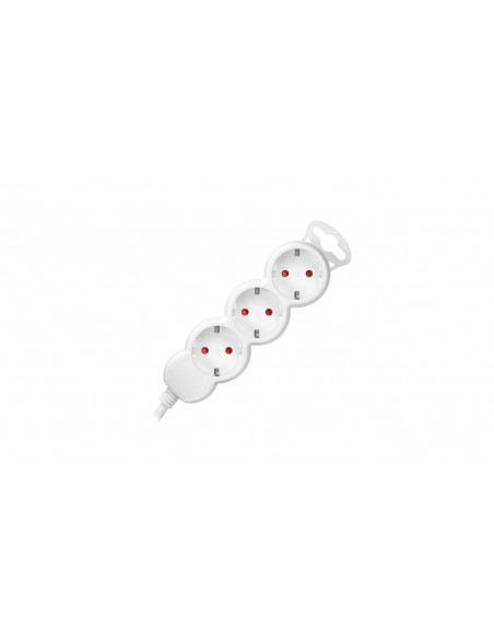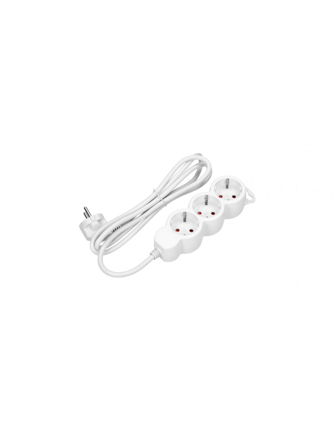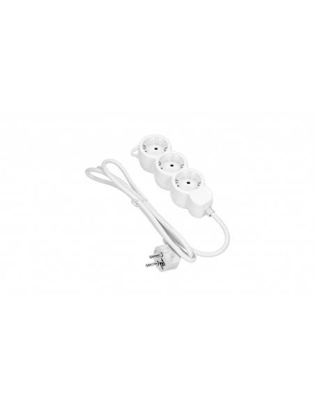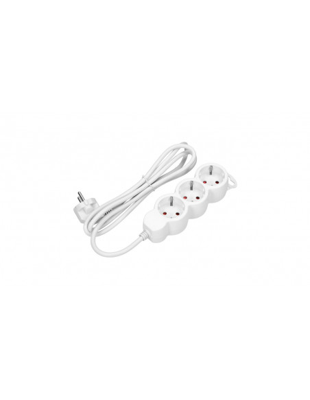 Biały przedłużacz z 3 gniazdami, 2P+Z (schuko) i kablem o długości 1,5m. Służy do podłączenia kilku urządzeń do jednego źródła prądu.