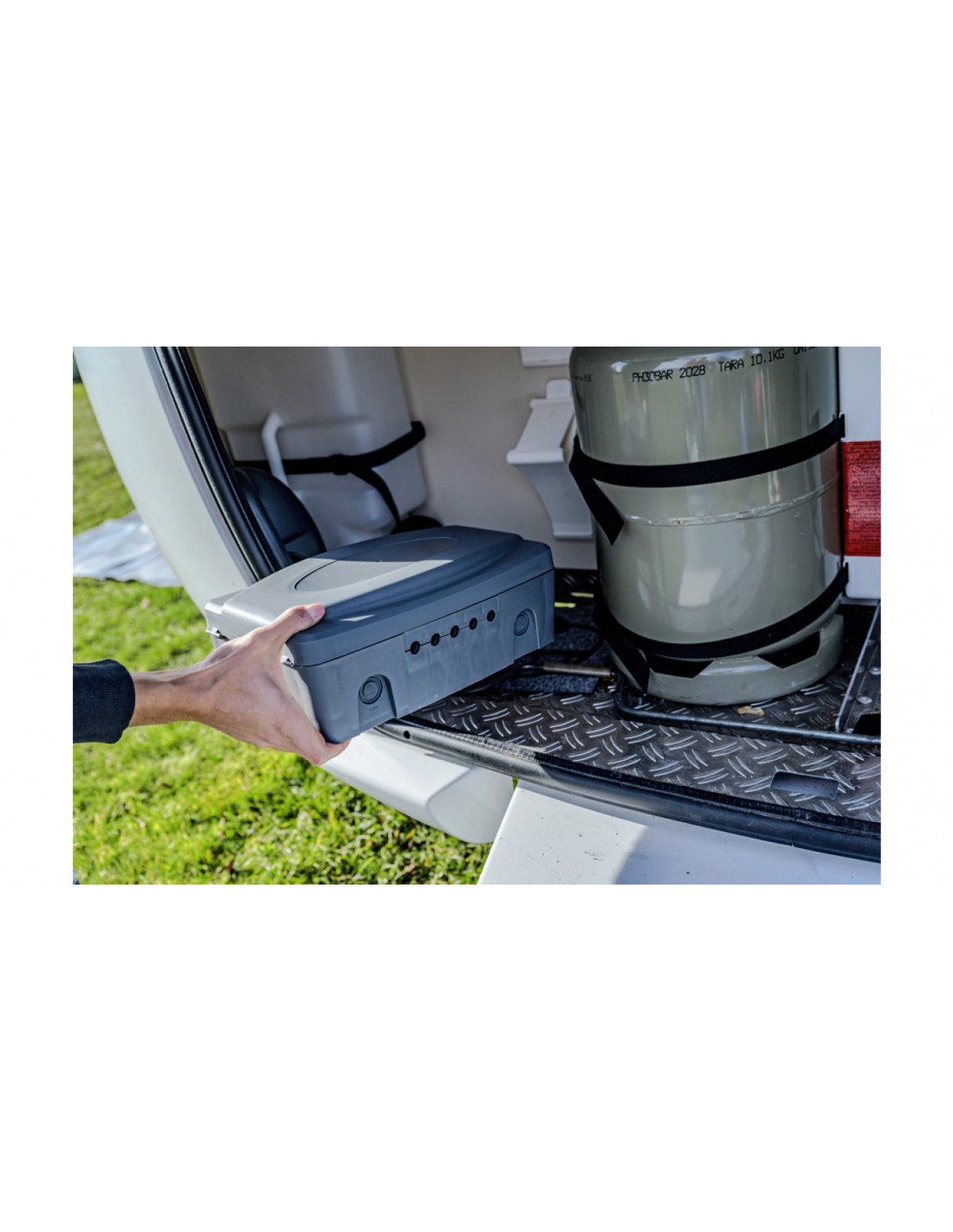 Odporna na warunki atmosferyczne skrzynka do zastosowań zewnętrznych ma stopień ochrony IP54, dzięki czemu zapewnia bezpieczne zasilanie w ogrodzie lub ogólnie na zewnątrz