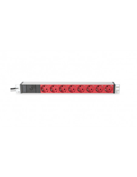 Listwa zasilająca PDU 19 Rack 8x czerwone gniazdo schuko 2m 1x wtyk C14 10A aluminiowa DN-95410-R