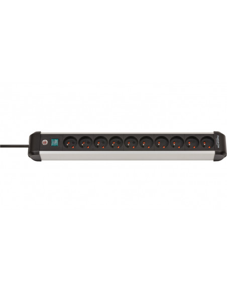 Premium-Alu-Line listwa zasilająca z 10 gniazda / listwa zasilająca z wysokiej jakości aluminium (gniazdo wielokrotne z wyłącznikiem i kablem 3m, Made in Germany)