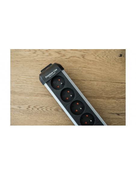 Listwa zasilająca Premium-Alu-Line z 10 gniazdami w smukłej obudowie służy jako optymalne źródło zasilania w biurze domowym lub w miejscu pracy. Listwa zasilająca z podświetlanym wyłącznikiem bezpieczeństwa (dwubiegunowym) i oszczędzającymi miejsce gniazdami w układzie 45° może być zamontowana na ścianie lub nawet na nodze stołu dzięki innowacyjnej koncepcji montażu. Gniazdo wielokrotne z podwyższoną ochroną styków przekonuje również następującymi cechami: