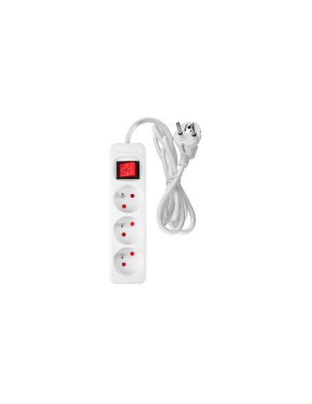 Przedłużacz listwowy 3 m, 3 x 1,5 mm², 3G, biały, ON/OFF 90-178 marki NEO TOOLS to przedłużacz o długości 3 m, z miedzianymi przewodami 3x 1,5 mm² oraz 3 gniazdami. Charakteryzuje się białym kolorem oraz przełącznikiem ON/OFF. Prąd nominalny 16A przy napięciu 230V i jego maksymalna moc 3680 W umożliwiają zasilanie większości urządzeń. Przedłużacz listwowy NEO TOOLS posiada wtyczkę typu E/F oraz gniazdo typu E. To przydatny produkt o uniwersalnym zastosowaniu do bezpiecznego rozgałęzienia zasilania.
