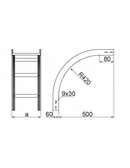 Łuk pionowy zewnętrzny drabinki 90 stopni 400x60mm LPDZC400H60 N 469140