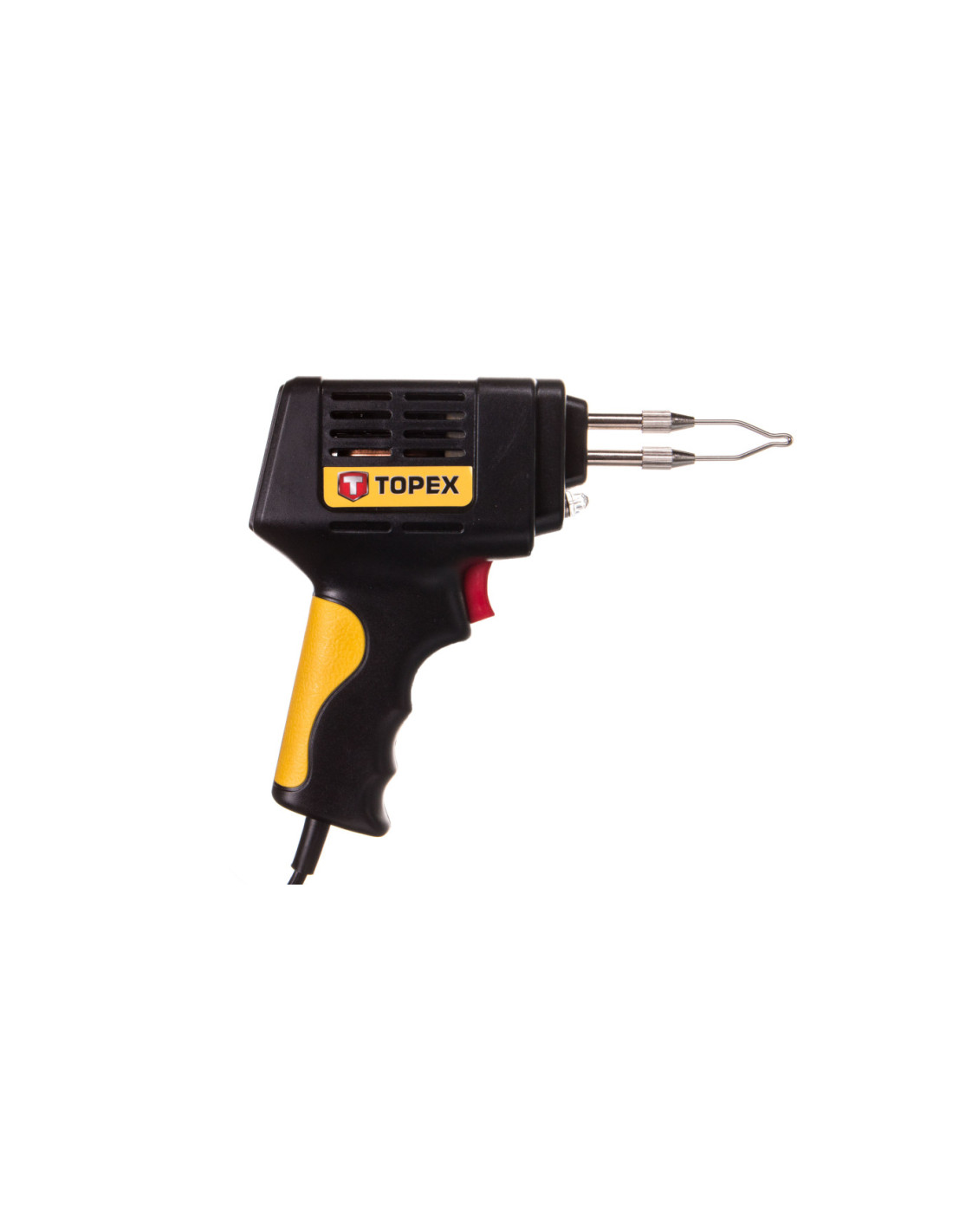 Lutownica 44E002 to produkt znajdujący się w ofercie katalogowej polskiego lidera w dziedzinie produkcji narzędzi ręcznych dla amatorów i profesjonalistów - firmy TOPEX. Prezentowany model należy do gatunku lutownic transformatorowych, które osiągają wysokie temperatury pracy dzięki przepływie prądu o dużym natężeniu przez drut, będący jednocześnie jej grotem.