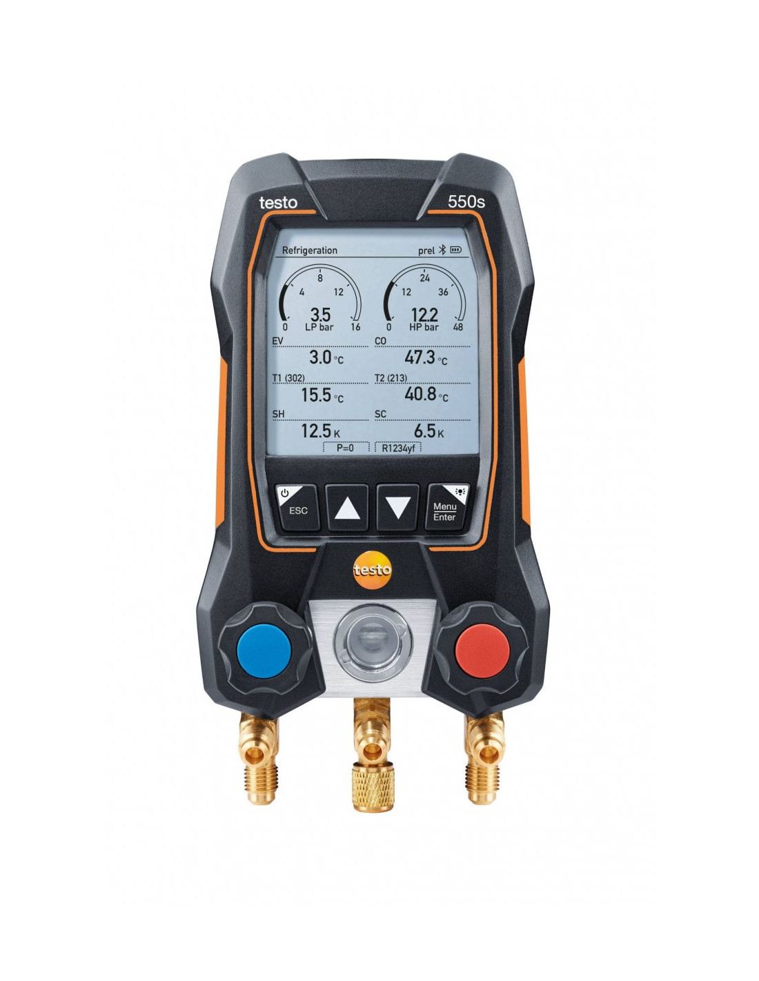Testo 550s – elektroniczna oprawa zaworowa Bluetooth z 2-drożną baterią zaworów, do uruchamiania, serwisu i konserwacji instalacji chłodniczych i pomp ciepła