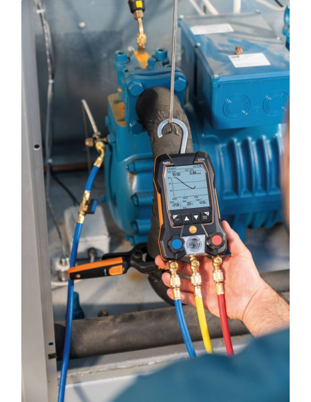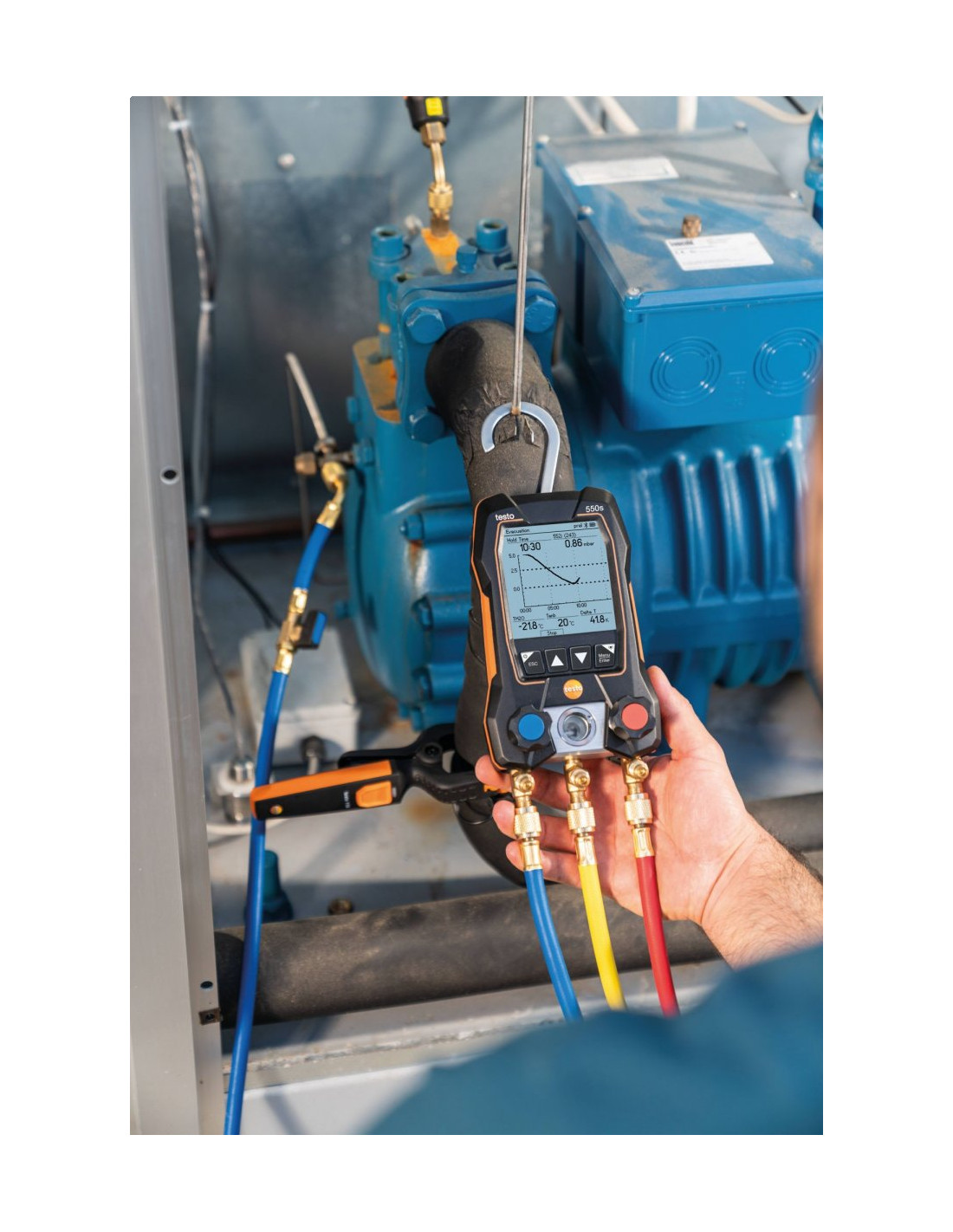 Elektroniczna oprawa zaworowa testo 550s z 2-drożną baterią zaworów umożliwia wyjątkowo szybkie wykonywanie pomiarów w systemach chłodniczych, klimatyzacyjnych oraz pompach ciepła. Duży wyświetlacz pomaga również w analizie wyników w formie graficznej. Niezawodne funkcje prowadzą użytkownika przez pomiar i umożliwiają automatyczne określenie wielu ważnych parametrów systemu, takich jak przegrzanie / dochłodzenie, docelowe przegrzanie, wydajność chłodnicza / grzewcza i wiele innych obszarów. Łatwe do podłączenia sondy Bluetooth do pomiaru temperatury, ciśnienia i wilgotności zapewniają maksymalną elastyczność zastosowania. Zintegrowana aplikacja mobilna otwiera przed użytkownikiem nowe możliwości i pozwala na efektywną analizę i dokumentację danych na miejscu pomiaru. Sprawdzona jakość i trwałość gwarantują niezmiennie wysoką wydajność Twojej elektronicznej oprawy zaworowej w każdych warunkach.