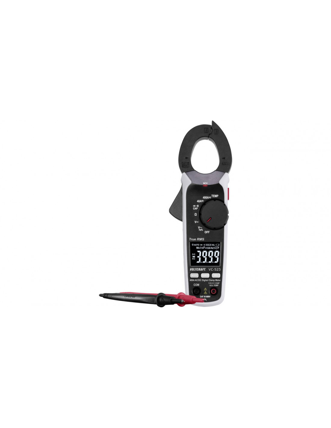 AntypoślizgowyVOLTCRAFT VC-523 ma antypoślizgową powierzchnię. Niezamierzonemu poślizgnięciu się na powierzchniach, które nie są poziome, skutecznie zapobiega gumowa powłoka.Wytrzymały i poręczny Dzięki zastosowaniu obudowy 2-elementowej z wbudowaną miękką, gumową osłoną, urządzenie można stosować również w trudnych warunkach. Obudowa pokryta gumą sprawia, że urządzenie pomiarowe jest bardzo poręczne i wytrzymałe. Przygotowany do systemów pasówStandardowy gwint do połączenia ze wspornikami bezpieczeństwa lub systemami pasów jest osadzony w obudowie. Urządzenie może być zabezpieczone przed przypadkowym upadkiem podczas pracy na większej wysokości.Pomiar temperaturyMiernik cęgowy jest wyposażony w funkcję pomiaru temperatury z termoelementami typu K. Załączony czujnik temperatury powietrza można opcjonalnie wymienić na wszystkie czujniki termoelektryczne VOLTCRAFT typu K do pomiaru mieszanin, cieczy lub powierzchni do 760 ° C.Dokładne wartości pomiaru dzięki pomiarowi rzeczywistej wartości skutecznej True RMS Pomiar rzeczywistej wartości skutecznej TrueRMS umożliwia dokładne zmierzenie napięć i prądów niesymetrycznych, które odbiegają od podstawowego kształtu sinusoidy. Niesymetryczne napięcia pojawiają się zazwyczaj w regulatorach mocy jako regulatory natężenia oświetlenia, regulatory prędkości, regulatory taktujące przełączne, ładowarkach impulsowych lub elektronicznych regulatorach prędkości, itp. Tradycyjne urządzenia do pomiaru wartości elektrycznych, przy tak specjalnych zadaniach, pokazują wartość obarczoną bardzo dużym błędem pomiarowym.Niezawodne wyniki pomiaru z kalibracją fabryczną W ramach kontroli jakości, wszystkie urządzenia pomiarowe VOLTCRAFT® po fazie produkcji, przechodzą kalibrację zgodnie ze standardem warsztatowym. Gwarantuje to wysoką jakość i zgodność z granicami tolerancji opisanymi w danych technicznych i w instrukcji obsługi. Certyfikat nie jest wydawany w wersji papierowej.