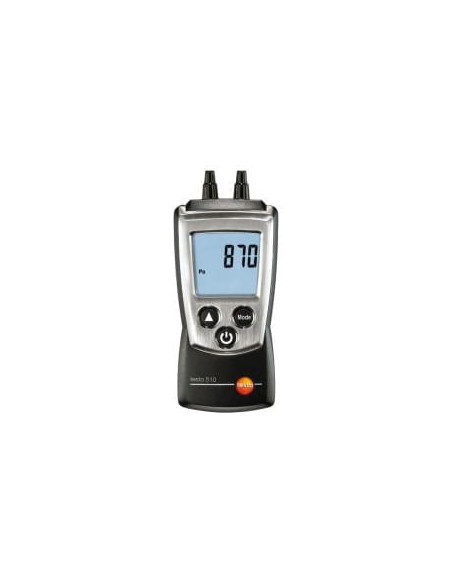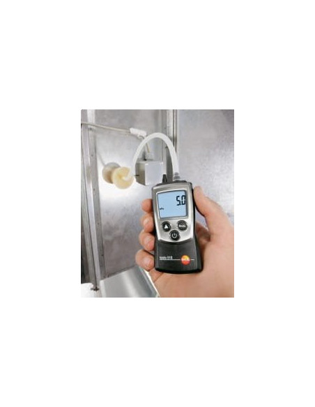 Testo 510 mierzy różnicę ciśnień w zakresie od 0 do 100 hPa. Kompensacyjny pomiar temperatury w celu uzyskania dokładniejszych wyników. Wyniki pomiarowe są przedstawiane w Pa w całym zakresie pomiarowym. Posiada magnesy z tyłu obudowy do wygodnego użytkowania. Wyświetlacz pozwala na wygodny odczyt danych nawet w niedostatecznych warunkach świetlnych.Miernik testo 510 w połączeniu z rurką Pitota mierzy prędkość przepływu. Kompensacja gęstości powietrza w celu dokładniejszych wartości. Testo 510 jest bardzo poręczny, mały i łatwy w użytkowaniu.