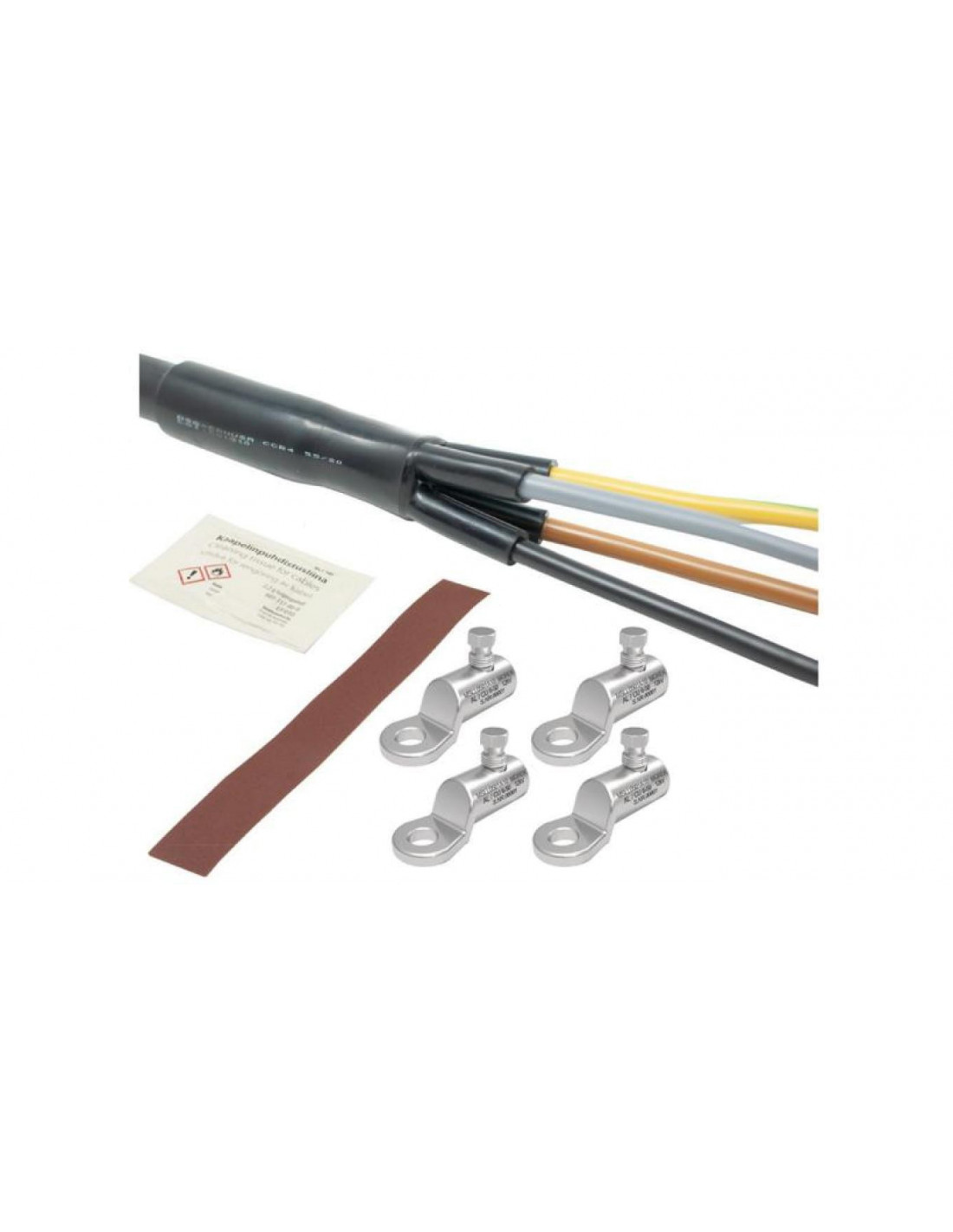 Mufy kablowe z końcówkami kablowymi na śruby zrywalne służą do zakończenia kabli 1Kv z izolacją z tworzywa sztucznego i zewnętrzną osłoną z tworzywa sztucznego. Końcówki kablowe ze śrubami zrywalnymi znajdują się w zestawach. Dostępne są zestawy zakończeniowe dla kabli 3-, 4- lub 5-żyłowych i nadają się zarówno do przewodów aluminiowych jak i miedzianych.