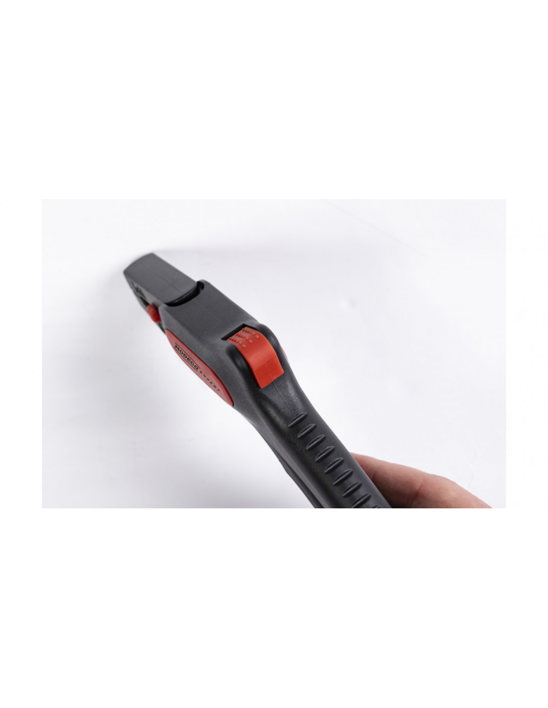 Obcinak przewodów znajdujący się w rękojeści gwarantuje cięcie przewodów Cu i Al o max przekroju 2 mm2