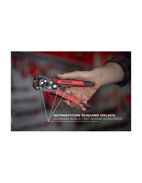 1 5020385084056 09_03_2023 Szczypce do odizolowywania Teng Tools CP60 Kod EAN: 5020385084056 Szczypce Teng Tools CP60 automatyzujące proces ściągania izolacji, ucinania kabla i zaciskania końcówek. Praktyczne i automatyzujące zadania szczypce Teng Tools CP60. Służą do ściągania izolacji, ucinania kabli i zaciskania końcówek. Za pomocą CP60 mamy możliwość ściągnięcia izolacji z przewodów o przekroju od 0,13 do 8,0 mm². Sprężyna powrotna ułatwia prace narzędziem, przyspieszając czynności wykonywane za jego pomocą. Szczypce umożliwiają zaciskanie izolowanych i nieizolowanych końcówek i konektorów. Jakość wykonania i użyte materiały sprawiają, że narzędzie jest niezawodne i wygodne w użytkowaniu. Specyfikacja techniczna Narzędzie łączące funkcje automatycznego ściągania izolacji, ucinania kabla i zaciskania końcówek Z łatwością odizolowuje przewody o przekroju 0,13 8,0 mm2 Nadaje się do zaciskania izolowanych i nieizolowanych końcówek i konektorów Sprężyna powrotna ułatwia powtarzalne użytkowanie Długość (mm) 210.00 Wymiary opakowania (mm) 33x120x265 Ilość w opakowaniu (szt.) 1 Kod EAN 5020385084056 Narzędzia Teng Tools z system organizacji Get Organized STWÓRZ ZESTAW NARZĘDZI ODPOWIADAJĄCY TWOIM INDYWIDUALNYM POTRZEBOM TengTools oferuje modułowy system przechowywania narzędzi ‑ solidny na lata. Stwórz swój optymalny system narzędziowy, korzystając z naszego szerokiego wachlarza zestawów narzędzi i sposobów ich przechowywania, które umożliwiają tworzenie indywidualnych rozwiązań dla każdej branży i zawodu. Nie marnuj miejsca i pieniędzy na narzędzia, których nie potrzebujesz. Kup dokładnie te narzędzia, które są Ci potrzebne, a jeśli w przyszłości potrzeby wzrosną, po prostu dokupisz nowe zestawy, idealnie pasujące do Twojego systemu przechowywania. Kupując produkty TengTools masz gwarancję najwyższej jakości. Jeśli narzędzie się zużyje lub jeśli zdarzy ci się któreś zgubić, pojedyncze sztuki można łatwo dokupić. GET ORGANISED ZAPEWNIA LEPSZĄ PŁYNNOŚĆ PRACY Narzędzia najczęściej używane masz w zasięgu ręki, a pozostałe też w pobliżu. Nadaje to pracy idealną płynność i maksymalizuje wydajność. Twoja skrzynka narzędziowa jest zawsze uporządkowana, więc nie tracisz czasu na poszukiwanie narzędzi. Zacznij stosować nasz system zarządzania narzędziami Nasz system zarządzania narzędziami oferuje najszerszy na rynku wybór rozwiązań. Różnorodne systemy przechowywania, od dużych szaf stacjonarnych po małe przenośne walizki serwisowe i ponad 240 zestawów narzędzi do wyboru, pozwalają łatwo tworzyć indywidualne komplety narzędzi, dokładnie odpowiadające Twoim potrzebom. System zarządzania narzędziami TengTools ma strukturę modułową, co oznacza, że standardowe zestawy pasują do wszystkich naszych systemów przechowywania narzędzi, umożliwiając w razie potrzeby wyjęcie pewnych zestawów np. z wózka narzędziowego i przełożenie do przenośnej walizki serwisowej, celem użycia do konkretnej pracy w terenie. Na początek po prostu wybierz szafkę, wózek lub skrzynkę, wybierz zestawy narzędzi i połącz zatrzaskowo ze sobą. Z Get Organised łatwo się zorganizować! GET ORGANISED™ W TRZECH PROSTYCH KROKACH 1 WYBIERZ JEDNOSTKI SYSTEMU PRZECHO WYWANIA Dopasowane do wszelkich potrzeb. 2 WYBIERZ KOMPLETY NARZĘDZI Twój komplet narzędzi. Twój wybór. 3 POŁĄCZ ZE SOBĄ W ZESTAWY Zoptymalizuj pod kątem płynności pracy. O MARCE Ten Tools to najwyższej jakości, profesjonalne narzędzia ręczne przeznaczone dla przemysłu, motoryzacji oraz budownictwa. Teng Tools to również oryginalny, usprawniający proces organizacji pracy system przechowywania narzędzi Get Organized. Opatentowane rozwiązanie, dzięki któremu narzędzia Teng Tools zawsze są we właściwym dla siebie miejscu. Czy to w skrzynce narzędziowej, czy walizce czy w różnej wielkości wózkach — system Get Organized pozwala na dowolne organizowanie przestrzeni szuflad. Wystarczy wybrać narzędzia, wybrać system przechowywania — klik ‑ już mamy kompletny i dopasowany do swoich potrzeb zestaw. Wielość modułów w połączeniu z ilością systemów przechowywania daje nieskończenie wielką możliwość kombinacji.