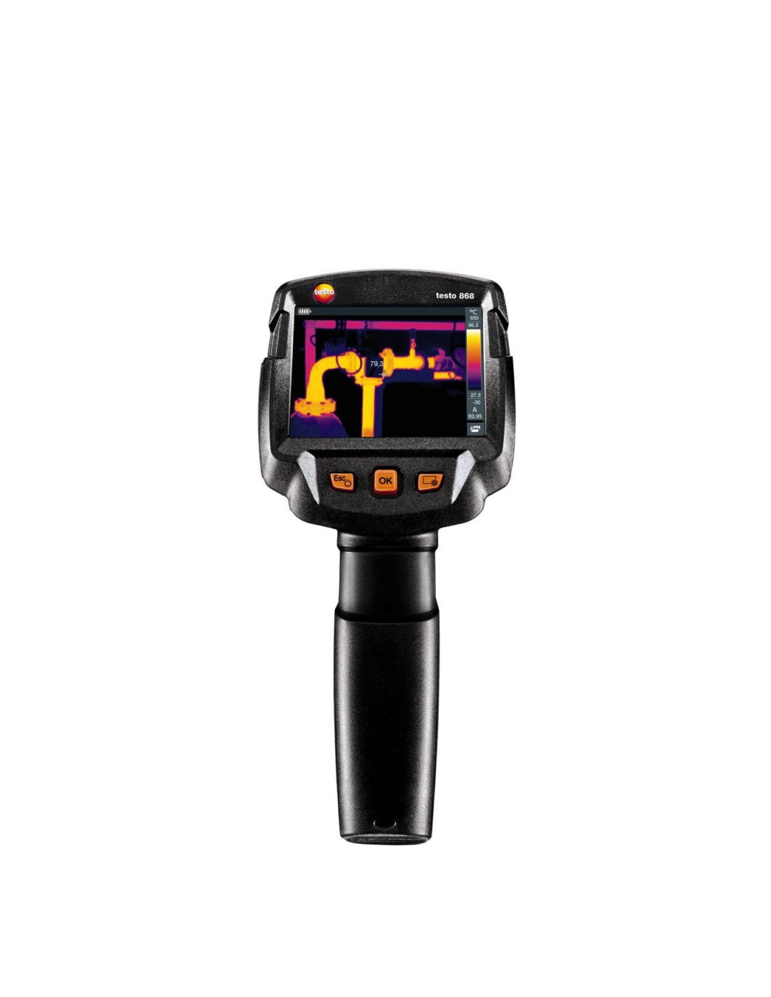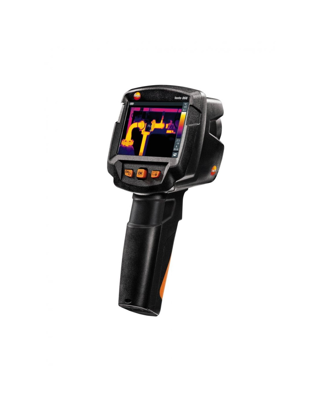 Kamera termowizyjna testo 868 oferuje profesjonalną technologię i charakteryzuje się prostą i szybką obsługą. Posiada opcje generowania porównywalnych i bezbłędnych obrazów termowizyjnych za pomocą poręcznych funkcji. Fukcje IFOV warner, testo ɛ-Assist i testo ScaleAssist oznaczają, że można uniknąć bledów pomiarowych, bez trudu osiągnąć optymalne ustawienie emisyjności (ɛ), temperatury odbitej(RTC) oraz skalę temperatury i paletę barw.
