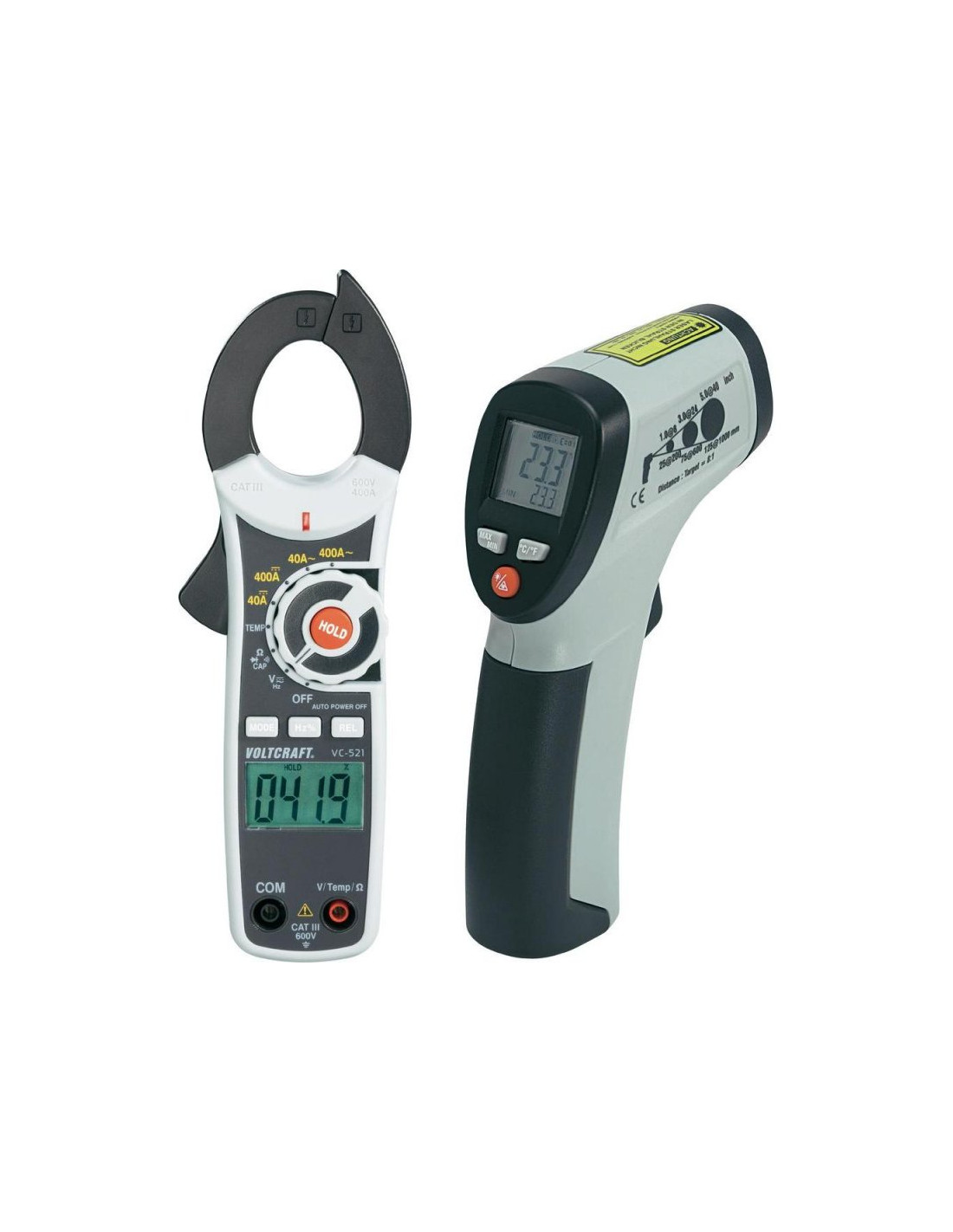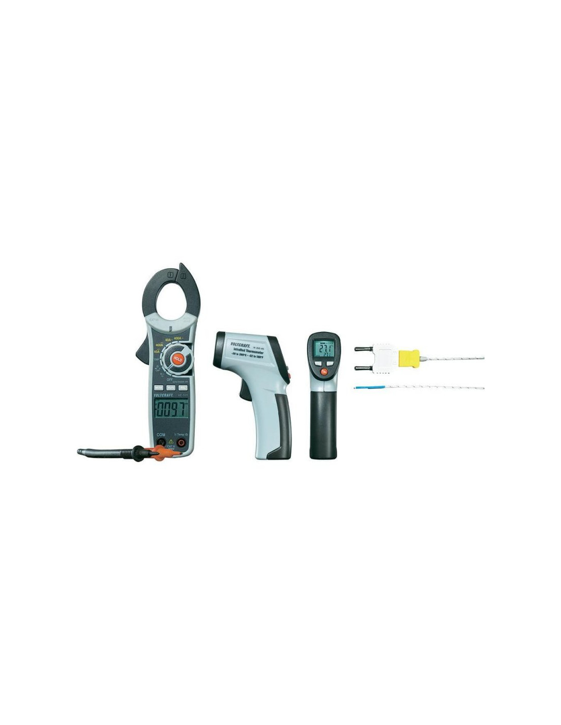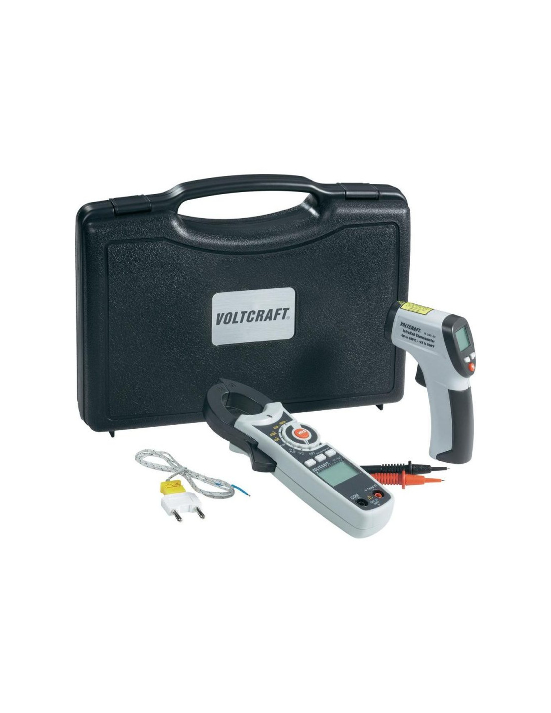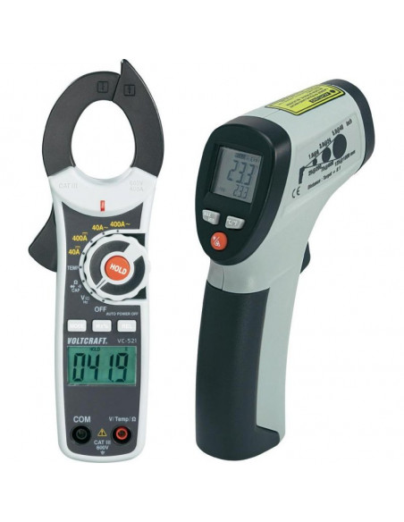 Solidny i praktyczny pirometr z uchwytem pistoletowym do bezstykowego pomiaru temperatur do 260°C. Z okazji 30-lecia firmy Voltcraft® do zestawu dołączony jest miernik cęgowy VC-521. Zestaw doskonale nadaje się do kontroli wzrostu temperatury w układach przewodów.