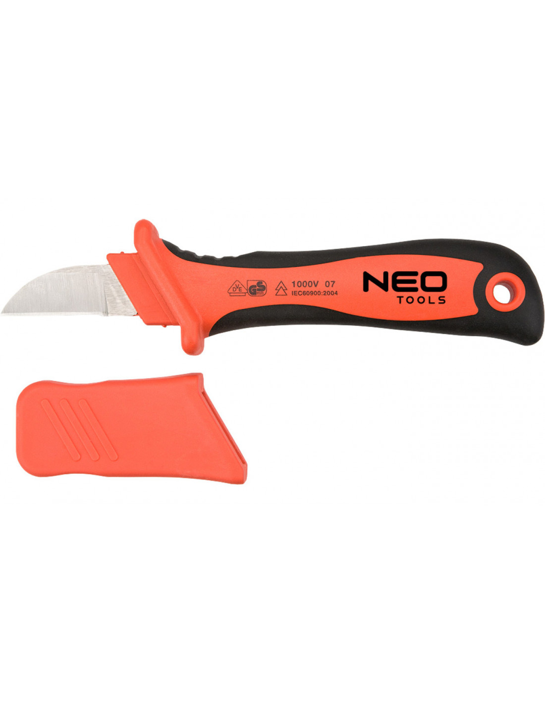 Grupa Topex jest wykonawcą tego noża monterskiego. Narzędzie posiada niezbędne atesty, które pozwalają na wykonywanie pracy nawet przy napięciu dochodzącym do 1000 V. Długość noża dochodzi do 195 mm, natomiast jego ostrze ma 50 mm i jest chronione osłoną. Ostrza są hartowane o twardości oznaczonej symbolem 51-53 HRC. Gwarancją wysokiej jakości i niezawodności narzędzia jest certyfikat TUV Rheinland. Produkt znajduje się w kolekcji NEO, która jest dedykowana profesjonalistom. Każdy klient, który zaopatrzył się w produkt tego koncernu, może być pewny o jego wieloletniej i sprawnej pracy. Wszystkie produkty zostały opatrzone wieloma renomowanymi certyfikatami, które są uznawane na całym świecie. Klienci Grupy Topex mogą być pewni, że sprzęt wychodzi z fabryki w pełni dopracowany. o. Bogaty zasób różnorodnych produktów jest dostępnych w wielu rozmiarach i rodzajach, po to, by klienci wybrali odpowiedni model dedykowany dla siebie lub swojego przedsiębiorstwa.