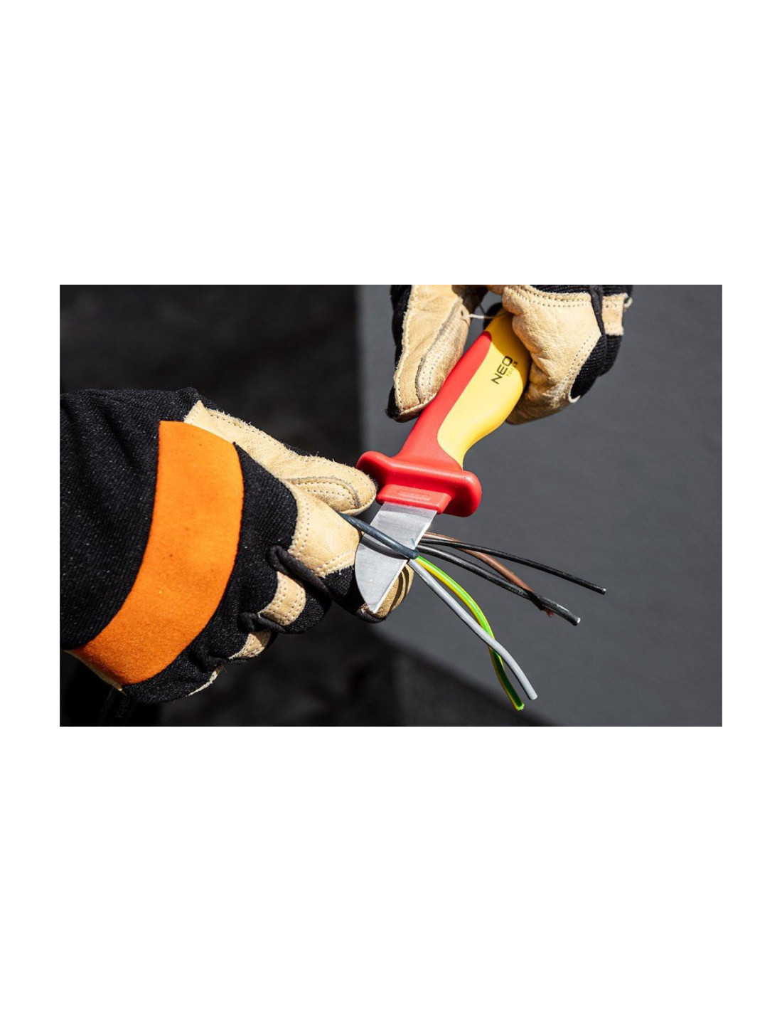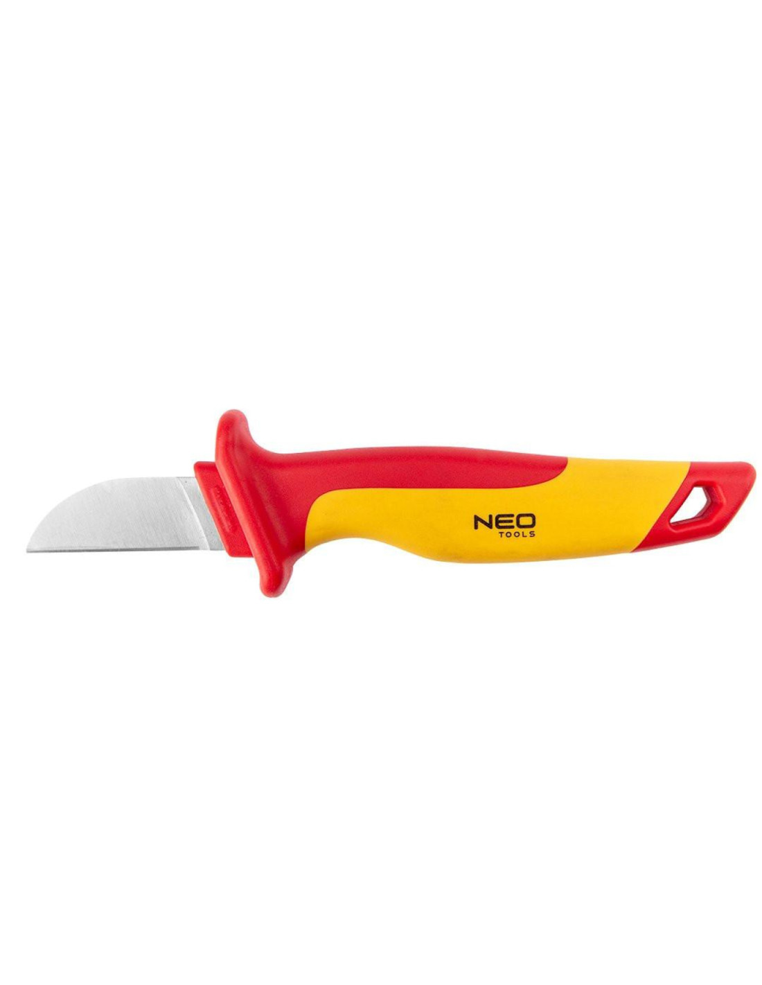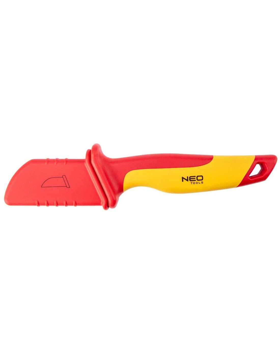 Nóż monterski 1000 V, 190 mm 01-552 marki NEO TOOLS to narzędzie izolowane przeznaczone do pracy z napięciem do 1000 V. Charakteryzuje się całkowitą długością 190 mm oraz twardością ostrza 51-53 HRc. Wyposażone w dwukomponentowy uchwyt oraz nakładkę zabezpieczającą ostrze wpływa na komfort jego użytkowania. Nóż NEO TOOLS wykonany został z solidnej stali CrV, dzięki czemu będzie użyteczny przez wiele sezonów
