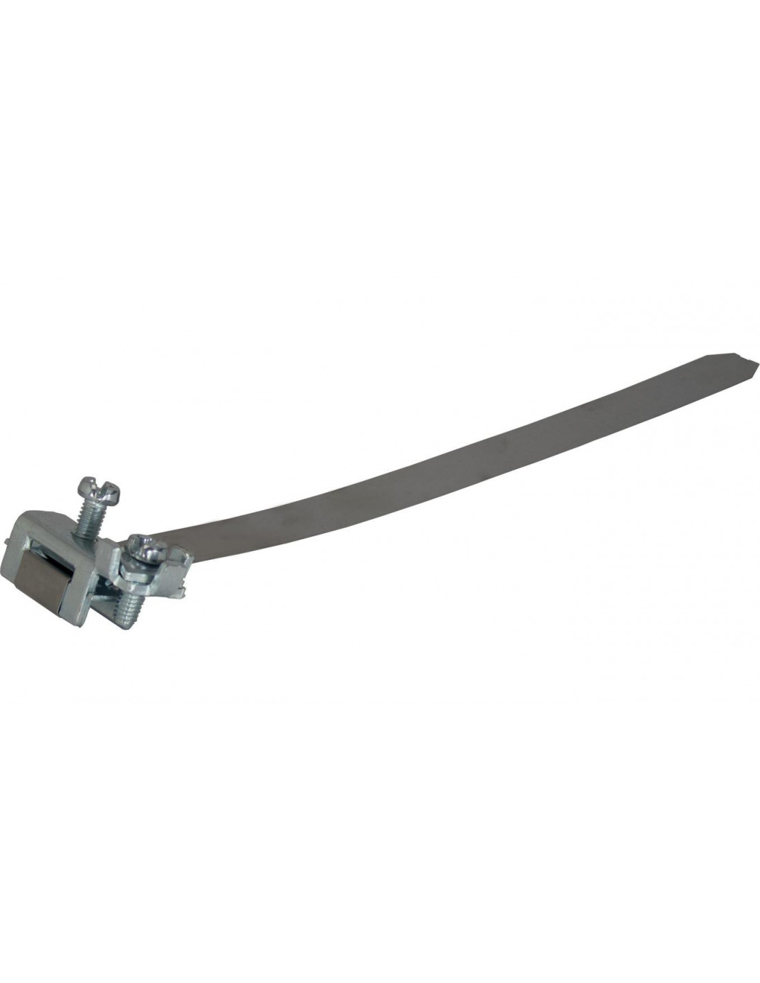 Opaski wykonane są ze stali nierdzewnej oraz wyposażone są w stalowy i ocynkowany zacisk do podłączenia przewodu PE o przekroju od 2,5 do 16 mm2 ( przewód w tulejce ) lub do 25mm2 ( przewód niezaizolowany typu żyła sztywna lub przewód wielodrutowy bez tulejki ).