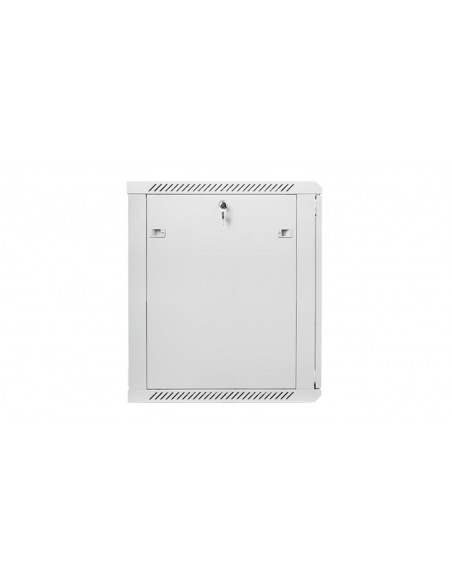 Szafa wisząca jednosekcyjna Lanberg WF01-6615-10S to rozwiązanie przeznaczone do budowy sieci, montażu okablowania oraz sprzętu w rozmiarze 19” o maksymalnym łącznym udźwigu do 60 kg. Może być stosowana w sieciach i serwerowniach zarówno w małych, jak i średnich firmach. Sprawdzi się również w instalacjach niskoprądowych takich jak sieci telewizji kablowych, systemy alarmowe, przeciwpożarowe, kontroli dostępu oraz systemy monitoringu CCTV i IP. Dzięki odpowiedniej konstrukcji, szafa umożliwia łatwy, samodzielny montaż. Charakteryzuje się szczelnością IP20, otwieranymi przednimi drzwiami z możliwością obrotu do 180°, wyposażonymi w zamek, zdejmowanymi bocznymi panelami (z zamkami w zestawie). Szafa posiada możliwość wprowadzenia okablowania poprzez górny i dolny panel. Całość wykonana jest z wysokiej jakości stali walcowanej, a dzięki konstrukcji do samodzielnego montażu (flat pack) znajduje się w płaskim opakowaniu co ułatwia transport. Dodatkowo w przesyłce załączone są dodatkowe akcesoria do mocowania szyn nośnych, śruby M6 oraz zaślepki paneli wejściowych.