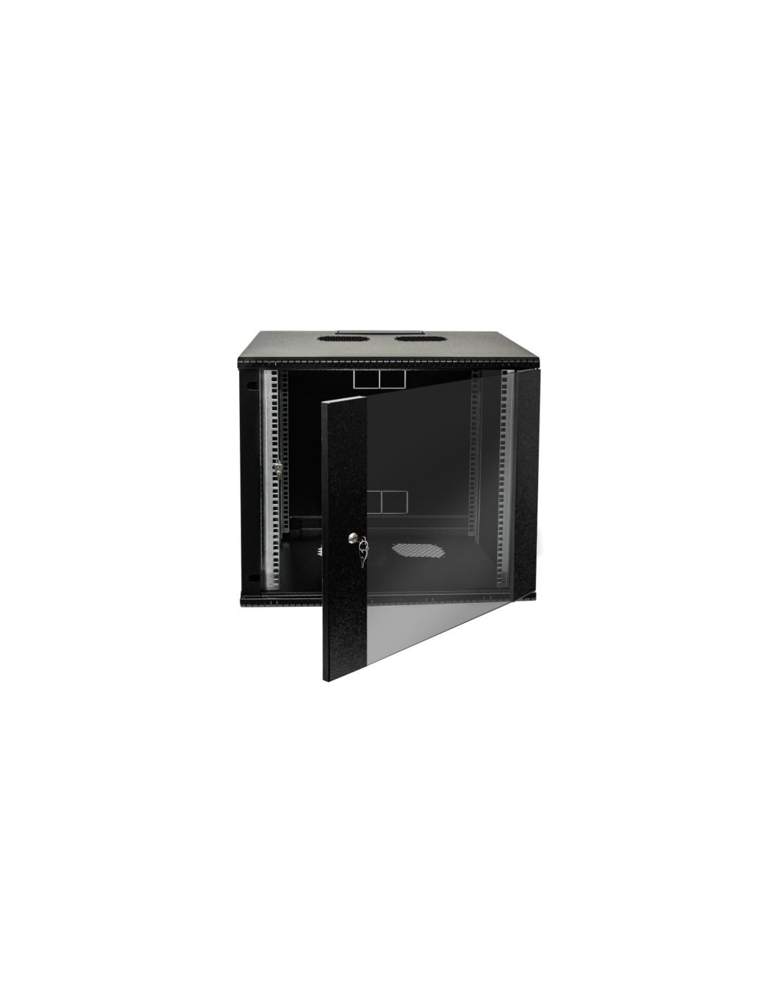 Szafa wisząca 19 cali 9U/600mm drzwi przeszklone otwierane boki RAL 9005 BOCK-019-090-600-C