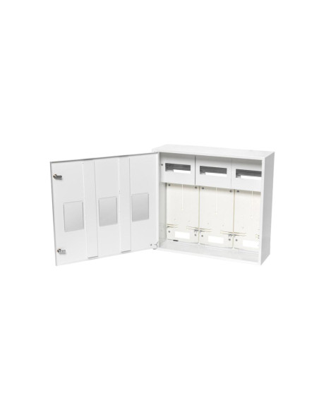 Rozdzielnica natynkowa 3-licznikowa 3-fazowa 24 moduły do plombowania -drzwi z okienkiem i zamkiem