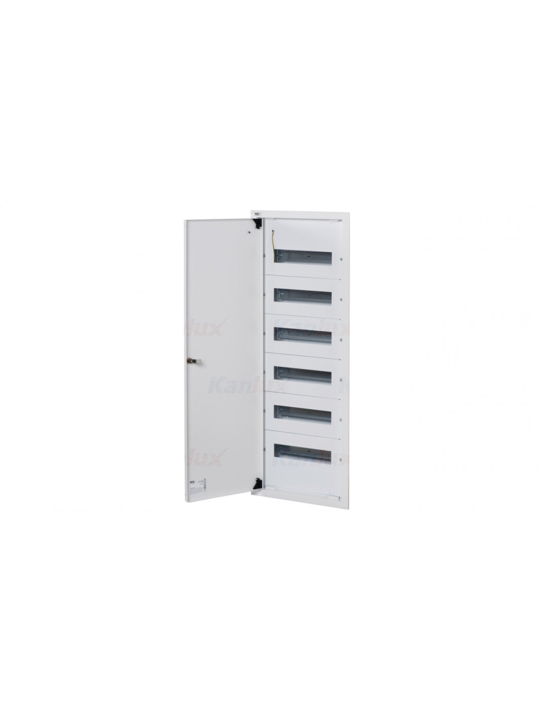Rozdzielnica metalowa podtynkowa z szynami DIN; liczba modułów 6x12P; liczba rzędów: 6; prąd znamieniowy 63A; IP30; I klasa izolacji.