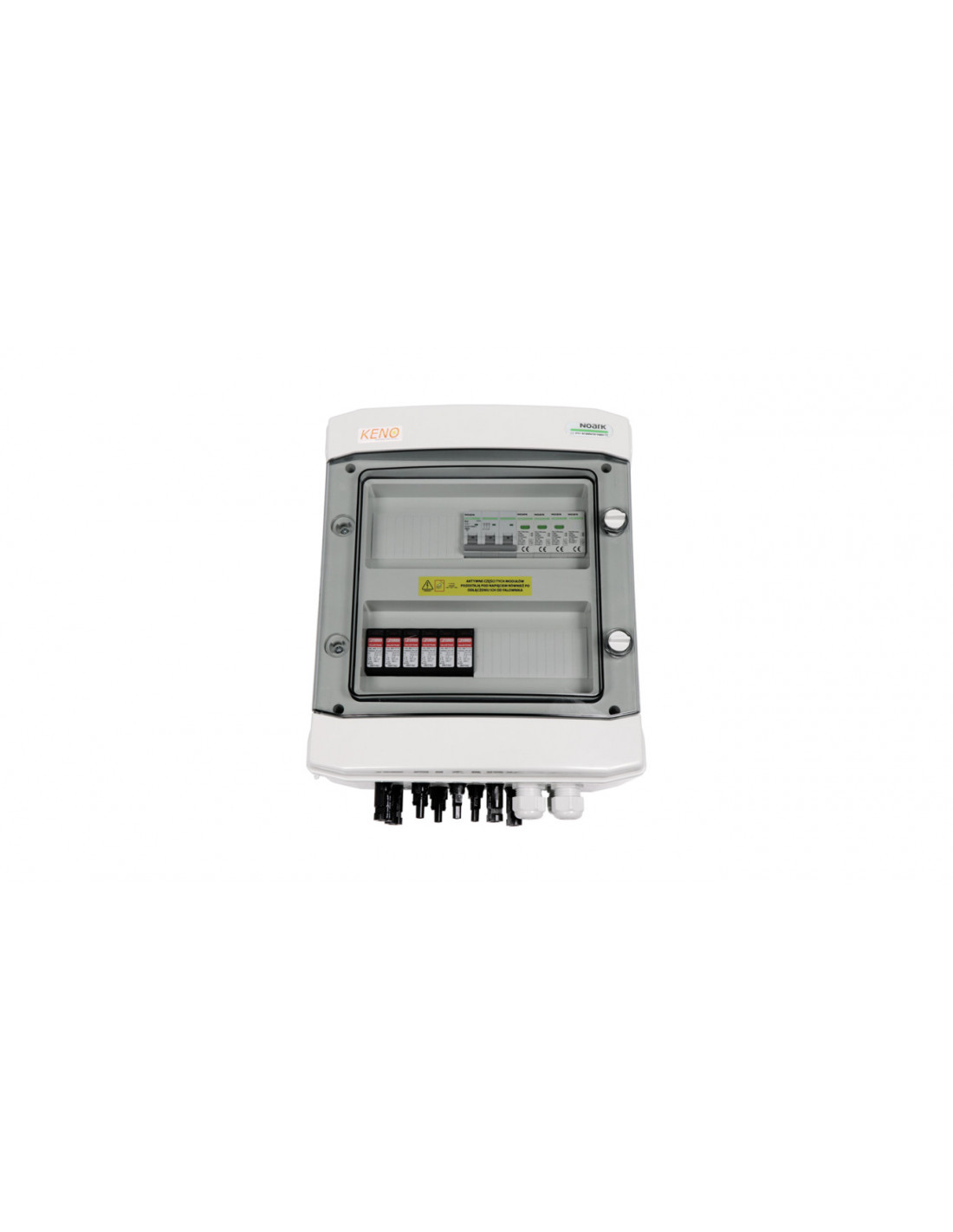 <p>Skrzynka przył. DC+AC hermetyczna KENO z ogranicznikiem przepięć 1000V typu 1+2, 2 x łańcuch PV, 2 x MPPT / ogr. AC typ 1+2, 20A 3-F</p>