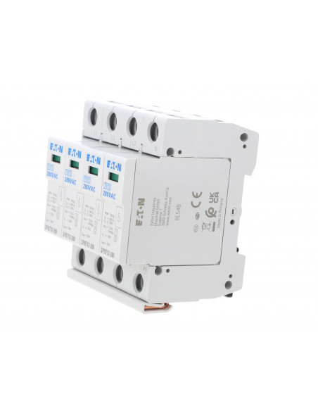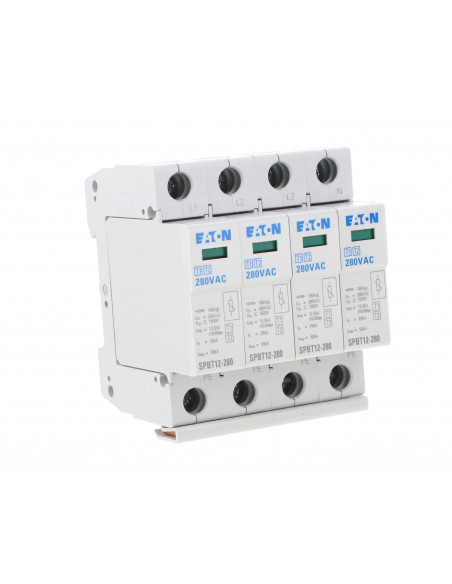 Ogranicznik przepięć B+C Typ 1+2 4P 12,5kA SPBT12-280/4 158331 Główne cechy produktu Ograniczniki przepięć serii SPBT12 to wszechstronne urządzenia chroniące instalacje elektryczne przed skutkami przepięć. Aparaty te klasy I+II, typu T1+T2 przeznaczone są do tłumienia wyładowań bezpośrednich i przepięć pośrednich. Ogranicznik przepięć klasy I+II zgodnie z IEC 61643‑1+A1 Ogranicznik przepięć typu T1+T2 zgodnie z EN 61643‑11 Wykonania o napięciu pracy AC 280 Wymienne wkłady Optyczna sygnalizacja uszkodzenia wkładu Zobacz video na temat ochronników przepięć i poznaj pełną ofertę zabezpieczeń niskiego napięcia Obowiązkowy element instalacji elektrycznej w Twoim domu Ochrona przed przepięciami elektrycznymi Przepięciówkę typu 1+2 (dawne B+C) montuje się w celu ochrony instalacji elektrycznych przed skutkami pośrednich wyładowań piorunowych i przepięć łączeniowych. Stosuje się go jako uzupełnienie ochrony za ogranicznikami typu 1, w podrozdzielnicach. ROZDZIELNICE ODDZIAŁOWE | ROZDZIELNICE PIĘTROWE | TABLICE ROZDZIELCZE Dlaczego warto wybrać ogranicznik przepięć Eaton? Pełne bezpieczeństwo Chroni przed skutkami bezpośredniego i pośredniego wyładowania. Wymienne wkładki warystorowe (oraz sygnalizacja ich uszkodzenia) Tego typu ogranicznik stanowi idealne zabezpieczenie przed przepięciami powstałymi w wyniku pośrednich wyładowań atmosferycznych lub procesów łączeniowych w sieci elektrycznej. Szybka weryfikacja stanu urządzenia Czerwone pole na optycznym wskaźniku uszkodzenia wkładu oznacza konieczność wymiany wkładu. Zielone ‑ prawidłową pracę urządzenia. Łatwy w montażu, wygodny w użyciu Informacja o stanie urządzenia na wyciągnięcie ręki Optyczny wskaźnik przepalenia wkładki Zaciski windowe i szynowe Informacja o kluczowych parametrach Prosty montaż na szynie DIN Specyfikacja techniczna: Typ: SPBT12-280/4 Typ ogranicznika: T1+T2 Sygnalizacja zadziałania na urządzeniu: Optyczna Poziom ochrony [kV]: 1,5 Prąd udarowy (10/350) [kA]: 12.5 Zdolność gaszenia prądu następczego [kA]: Nie dotyczy Maksymalny poziom ochrony L-N [kV]: 1.5 Rozmiar: 4 moduły Znamionowe napięcie AC [V]: 280 Liczba biegunów: 4 Maksymalny poziom ochrony L-PE/N-PE [kV]: 1.5 Główne czynniki powstawania przepięć Ostre burze lub awarie elektryczne mogą prowadzić do powstawania przepięć. Te z kolei do uszkodzenia instalacji elektrycznej. W ich wyniku zniszczone mogą zostać sprzęty elektryczne podłączone do sieci. Dlatego obiekty przemysłowe, usługowe i mieszkalne powinny być wyposażone w instalację odgromową oraz w ochronniki przeciwprzepięciowe. Ochrona przed wyładowaniami piorunowymi i przepięciami łączeniowymi jest bardzo ważna dla bezpieczeństwa obiektu. Może ona ograniczyć zagrożenia pożarowe i porażeniowe w obiekcie. Ograniczniki przepięć w instalacjach elektrycznych Ograniczniki przepięć służą do ochrony urządzeń elektrycznych przed skutkami przepięć, wyładowań atmosferycznych i uderzenia pioruna. Wzrost napięcia w sieci wywołany przykładowo uderzeniem pioruna powoduje zadziałanie ogranicznika i obniżenie napięcia w sieci do poziomu bezpiecznego dla odbiorników elektrycznych. Ogranicznik przepięć to obowiązkowe zabezpieczenie w Polsce każdej instalacji elektrycznej. Ograniczniki przepięć firmy EATON zapewniają skuteczną ochronę przeciwprzepięciową. Ich zaletą jest zastosowanie warystorów, które cechują się szybkością działania i wyjątkową zdolnością do pochłaniania energii. Dodatkowo posiadają optyczny wskaźnik uszkodzenia, który umożliwi podjęcie działania na czas, gdy urządzenie zostanie uszkodzone. Ograniczniki przeciwprzepięciowe SPCT2 należy instalować w : 1 2 3 4 5 budynkach z zewnętrzną z instalacją piorunochronną budynkach z zewnętrzną linią napowietrzną i instalacją piorunochronną chronionym obiekcie, w którym jako instalację odgromową wykorzystano wewnętrzną konstrukcję stalową budynkach zasilanych linią kablową, gdy odległość między budynkiem a stacją trafo jest niewielka (możliwość wystąpienia dużych prądów zwarciowych) obiektach bez instalacji odgromowej w bliskim sąsiedztwie obiektów wysokich, gdy uziomy obiektów są połączone Poznaj asortyment produktów Eaton i wybierz odpowiedni ogranicznik dla siebie Klasa testowa I/II dla instalacji fotowoltaicznej [T1/2 PV] Klasa testowa II dla instalacji fotowoltaicznej [T2 PV] Klasa testowa I/II [T1/2] Klasa testowa II [T2] Klasa testowa III [T3] Samodzielny montaż na szynie DIN Podłącz do obecnie używanej instalacji Zestawy zaleca się instalować (rozpatrując od strony zasilania) przed urządzeniami pomiarowymi i różnicowoprądowymi. Zapobiega się w ten sposób błędnemu działaniu wyłączników różnicowoprądowych podczas przepływu prądu udarowego po zadziałaniu ograniczników przepięć. Światowe zapotrzebowanie na energię elektryczną stale rośnie Eaton jest firmą zajmującą się inteligentnym zarządzaniem energią, zaangażowaną w ochronę środowiska naturalnego i poprawę jakości życia ludzi na całym świecie. Dostarczamy rozwiązania elektryczne, które zużywają mniej energii, ulepszają niezawodność zasilania i sprawiają, że miejsca pracy oraz zamieszkania są bezpieczniejsze i wygodniejsze. Nasze produkty sprzedajemy w ponad 175 krajach. Najczęściej zadawane pytania Co to jest ogranicznik przepięć? Ogranicznik przepięć to zabezpieczenie elektryczne mające na celu ochronę instalacji elektrycznej i urządzeń przed skutkami wyładowań atmosferycznych oraz przepięć łączeniowych. Czy ogranicznik przepięć jest obowiązkowy? Od roku 2002 zgodnie z rozporządzeniem w sprawie warunków technicznych jakim powinny podlegać budynki i ich usytuowanie, ograniczniki przepięć są wymagane w nowo budowanych obiektach jako element ochrony przed wyładowaniami atmosferycznymi. Jaki ogranicznik przepięć do do