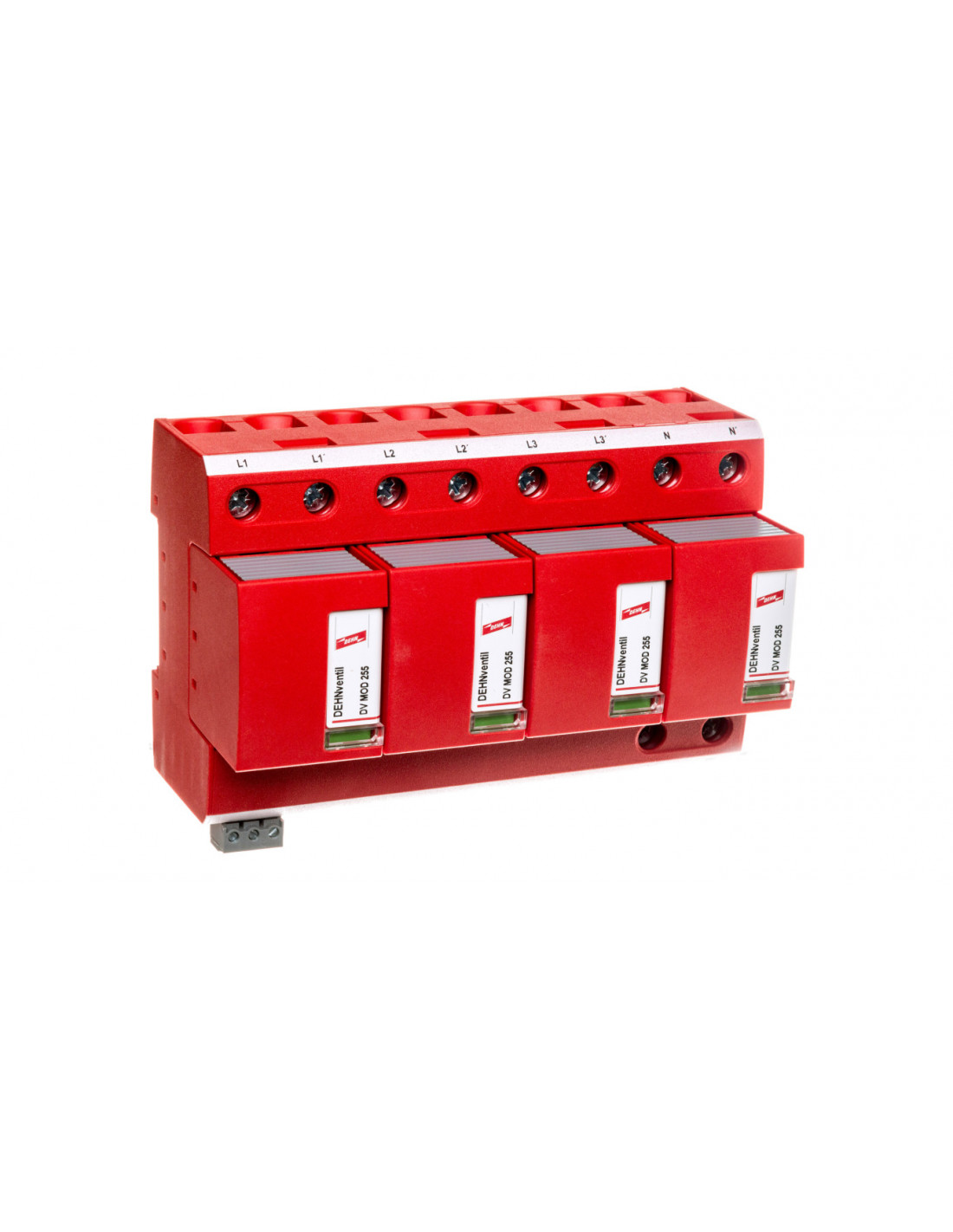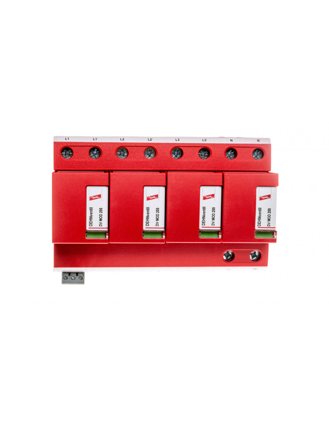 Ogranicznik przepięć jest to urządzenie niezbędne by zabezpieczyć instalację przed przepięciami które powstają wskutek wyładowań atmosferycznych albo w przypadku gdy w sieci elektrycznej powstają procesy łączeniowe. Dzięki temu aparatowi można uchronić urządzenia elektryczne zainstalowane w budynku przed uszkodzeniem lub całkowitym zniszczeniem. Powyższy ogranicznik przepięć 941400 producenta DEHN charakteryzuje się następującymi właściwościami: - jest czterobiegunowy - montuje się go na szynie DIN - szerokość wyrażona jest w 8 modułach - klasy B+C - kombinowany na bazie iskierników - znamionowy prąd wyładowczy (8/20) 25/100kA - napięciowy poziom ochrony 1,5kV - stopień ochrony IP20