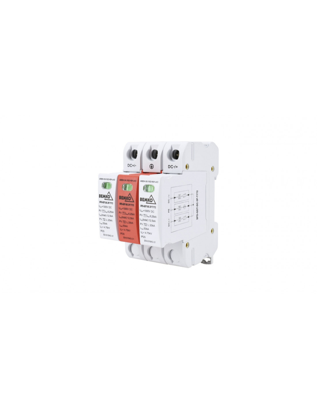 1.1 5900280953537 15_02_2023 OGRANICZNIK PRZEPIĘĆ SPD‑GDT‑DC‑3P‑T1T2 Cechy produktu Szybka instalacja Montaż na szynie DIN 35 za pomocą klipsów oraz instalacja z wykorzystaniem szyn grzebieniowych Wymienne wkładki Ograniczniki wyposażono w wymienne wkładki z sygnalizacją stanu pracy. Instrukcja obsługi zawiera szczegółowe informacje dotyczące wykonania instalacji zapewniającej wymagany poziom ochrony Bezpieczeństwo potwierdzone certyfikatem Zgodność deklarowanych parametrów potwierdzają badania wykonywane w Państwowym Laboratorium Badawczym Ogranicznik przepięć DC 3P B+C Klasa T1+T2 25kA 4.75kV 5 lat gwarancji Ograniczniki przepięć model SPD‑GDT‑DC‑3P‑T1T2 przeznaczone są do ochrony instalacji fotowoltaicznych przed skutkami przepięć, mogących powstać w wyniku wyładowań atmosferycznych oraz przepięć indukowanych i łączeniowych. Ogranicznik zawiera wymienne wkładki z sygnalizacją uszkodzenia. liczba modułów: 3 typ: MOV+GDT+MOV (warystorowo‑iskiernikowy) znamionowy prąd wyładowczy: In= 25A graniczny prąd wyładowczy Imax= 50kA prąd udarowy: Iimp= 6.25kA napięciowy poziom ochrony: Up≤ 4.75kV stopień ochrony (IP): IP20 mozliwość stosowania szyn grzebieniowych wizualna sygnalizacja stanu pracy okres gwarancji: 5 lat Zastosowanie produktu Instalacje domowe Instalacje sklepowe Instalacje fotowoltaiczne Aparatura modułowa Rozdzielnie elektryczne Rozdzielnie elektryczne Centrum Badawczo - Rozwojowe Wysoka jakość produktów i nowoczesny design oparte są na fundamencie obszernego programu badań, prowadzonego w naszym Centrum Badawczo‑Rozwojowym. Laboratorium powstało w 2019r. i zostało wyposażone w wysokiej klasy urządzenia pomiarowe (m.in. Goniofotometr GPM i kule Ulbrichta) pozwalające na doskonalenie rozwiązań technicznych i optymalizację cech użytkowych naszych opraw. Zapewnienie o najwyższej jakości oferowanych przez nas produktów to dla nas priorytet. Jakość potwierdzona jest licznymi badaniami i testami. Możliwości Centrum Badawczo‑Rozwojowego pozwalają na kontrolę jakości produktów w zakresie zgodności z: wymaganiami bezpieczeństwa użytkowania, wymaganiami kompatybilności elektromagnetycznej EMC, deklarowanych parametrów fotometrycznych, odporności mechanicznej IK, parametrów elektrycznych zasilaczy. Poznaj naszą firmę bliżej BEMKO Sp. z o.o. to firma z branży elektrotechnicznej o ugruntowanej pozycji na rynku, notująca systematyczny wzrost udziału w produkcji sprzętu oświetleniowego i elektrotechnicznego w kraju i za granicą. Spółka założona w 2007 r. obecnie dystrybuuje swoje produkty na terenie Polski, oraz w Unii Europejskiej za pomocą rozbudowanej sieci hurtowni, wspieranej przez regionalnych Menedżerów Sprzedaży. Siedziba firmy znajduje się w podwarszawskich Jawczycach, tuż przy autostradowym węźle Konotopa. Główną ideą BEMKO jest dostarczanie Klientom innowacyjnych produktów odpowiadającym obecnym trendom na rynku z uwzględnieniem postępu technologicznego w branży oraz zapewniając jednocześnie równowagę pomiędzy jakością a efektywnością energetyczną.