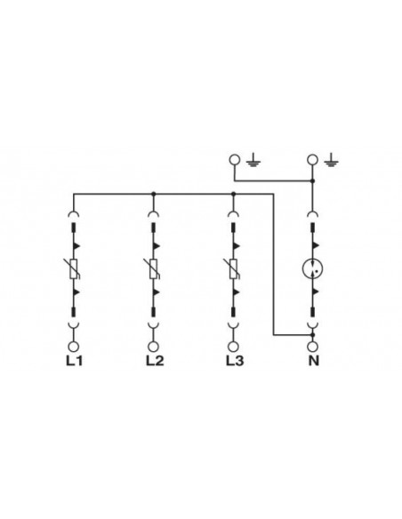 Wewnętrzny układ połączeń 3+1 oferuje poziomy ochrony przy In (20kA 8/20): Up ≤ 1,6 kV.