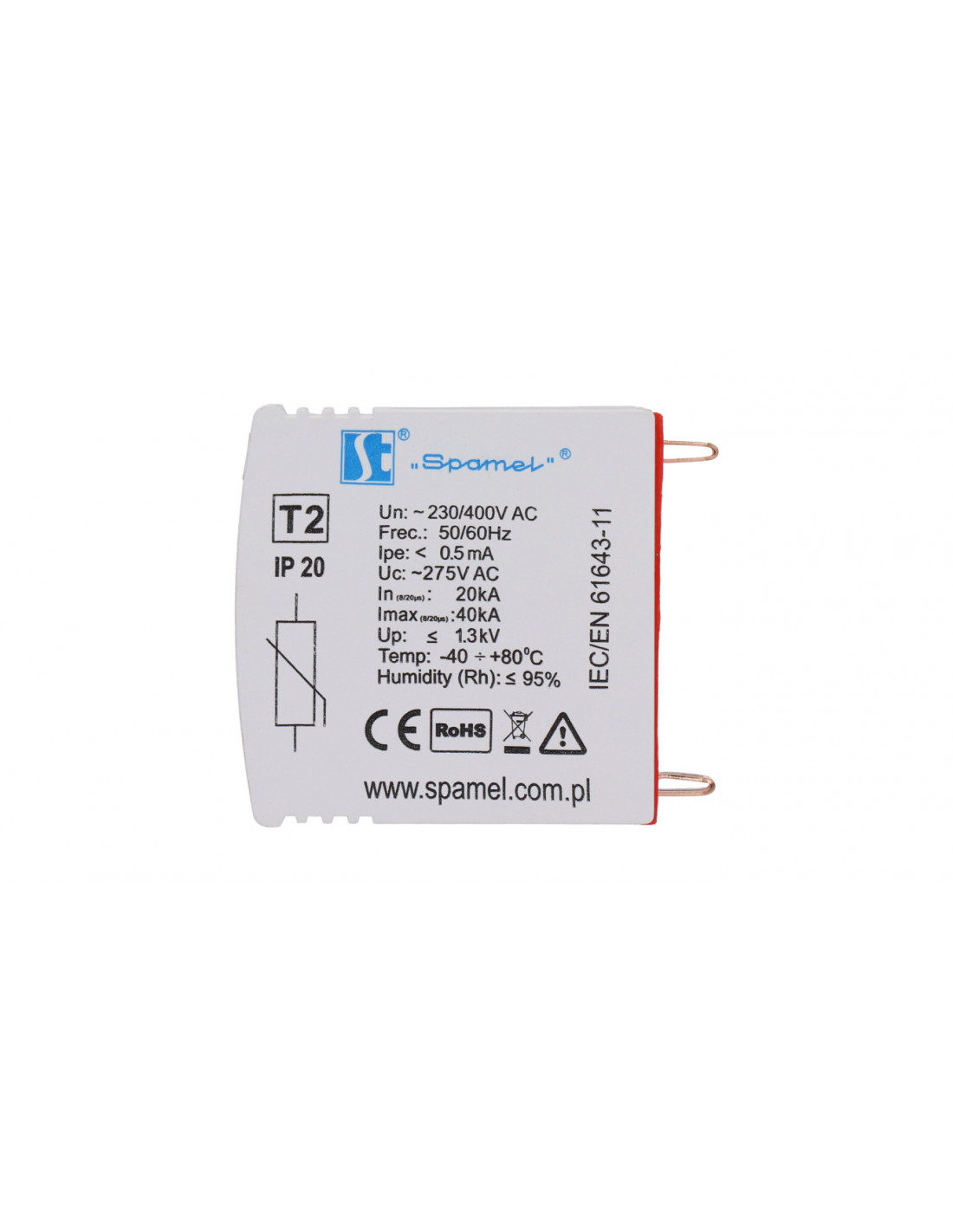 - Znamionowy prąd wyładowczy - wartość szczytowa (8/20) [kA]: 40