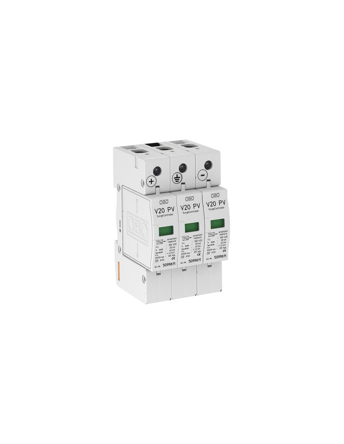 Ogranicznik przepięć PV 600V DC Typ 2 C 3P 20kA 2,6kV V20-C 3PH-600 5094605 przeznaczony jest dla instalacji bez ochrony odgromowej lub z zachowanymi odstępami izolacyjnymi.