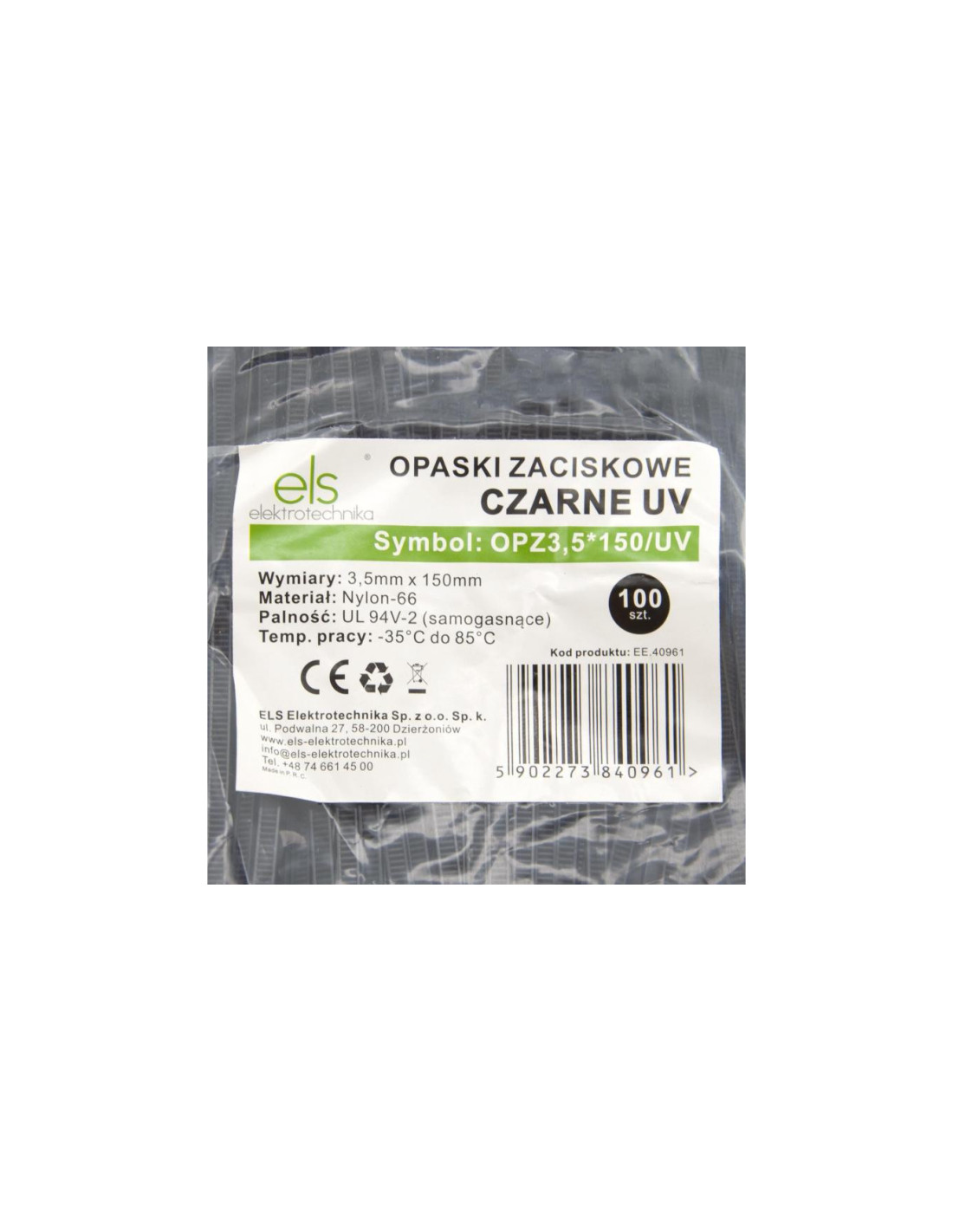 Opaski zaciskowe 3,5x150 UV czarne do kabli E LS Elektrotechnika opakowanie / 100 szt.