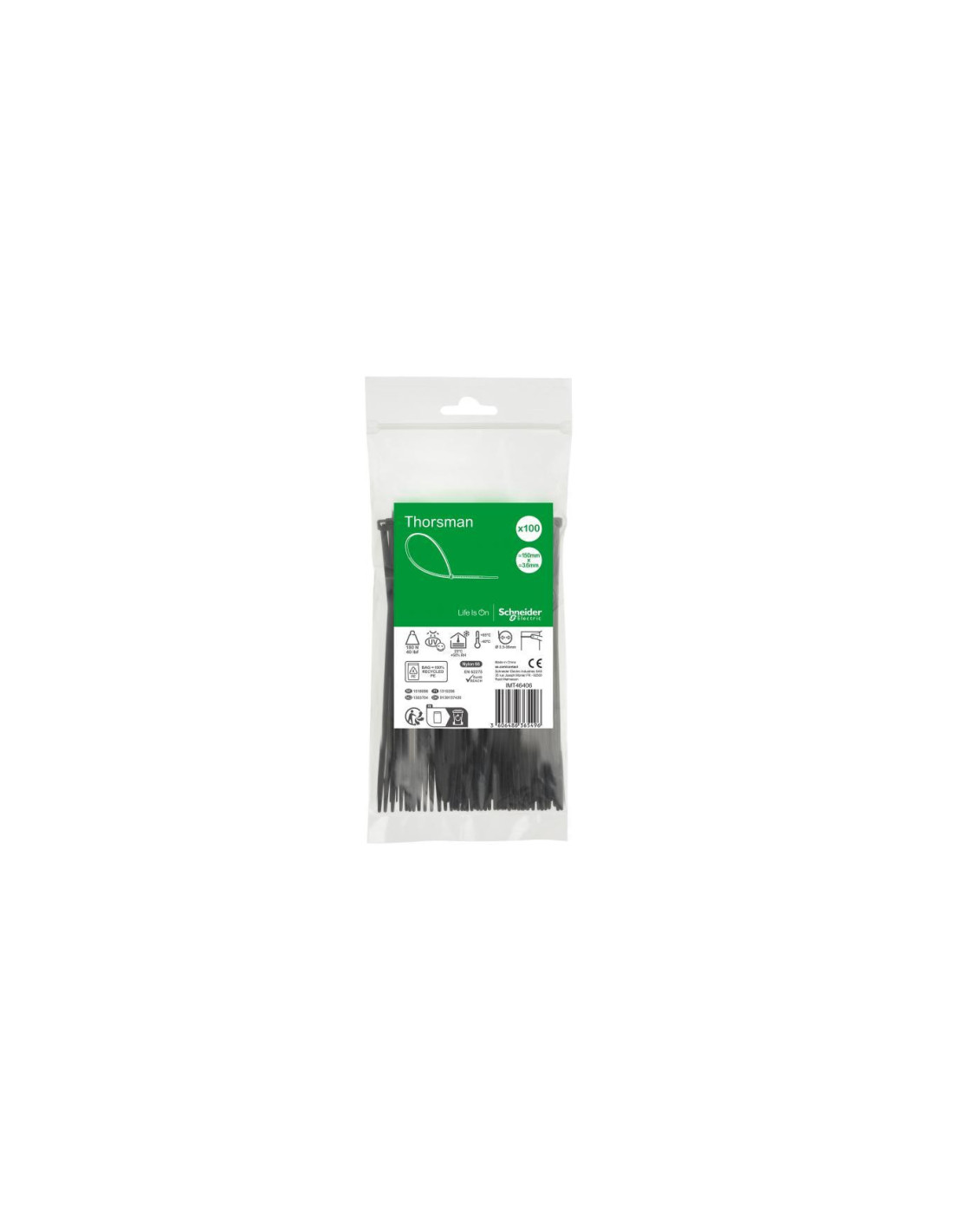 Opaska kablowa thorsman firmy Schneider Electric jest wykonana z materiału do instalacji kabli 150 x 3,6 mm.Opaski kablowe są stosowane w szerokim zakresie zastosowań, w tym do łączenia w wiązki i mocowania kabli, kanałów kablowych i rur.Opaski zaciskowe są samoblokujące.Opaski zaciskowe mają gładkie zaokrąglone krawędzie, co ułatwia przenoszenie i zwiększa bezpieczeństwo instalacji.Wygięta, zaokrąglona końcówka umożliwia łatwiejsze wprowadzanie kabla przez głowicę opaski kablowej.Średnica wiązki wynosi od 3,5 mm do 36 mm.Wytrzymałość na rozciąganie w pętli wynosi 180N / 40lbf.Wymiary produktu to (L) 150 mm x (W) 3,6 mm x grubość (T) 1,2 mm, a waga produktu to 62 g.Wykonany jest z PA (poliamidu) 66 stabilizowanego promieniowaniem UV Kolor produktu jest czarny.Temperatura powietrza otoczenia podczas pracy wynosi od -40°C do +85°C.Opakowanie jest wykonane w 100% z materiałów nadających się do recyklingu, a ilość produktu wynosi 100 sztuk w zamykanej na zamek torebce z możliwością ponownego uszczelnienia.Akcesoria do prowadzenia kabli w thorsman, takie jak wtyczki i mocowania wnęk, śruby, skrzydełka kabli, zostały zaprojektowane tak, aby zapewnić jak najlepsze wyniki.Akcesoria do okablowania thorsman i gama mocowań zapewnia szeroką ofertę dla wszystkich rodzajów potrzeb klientów i obejmuje maksymalną liczbę zastosowań, elastyczność, niezawodność i wydajność.Produkt jest zgodny z normą IEC 60695-11-5 i jest ognioodporny, posiada normę ognioodporności UL 94 V2 (samogasnącą).