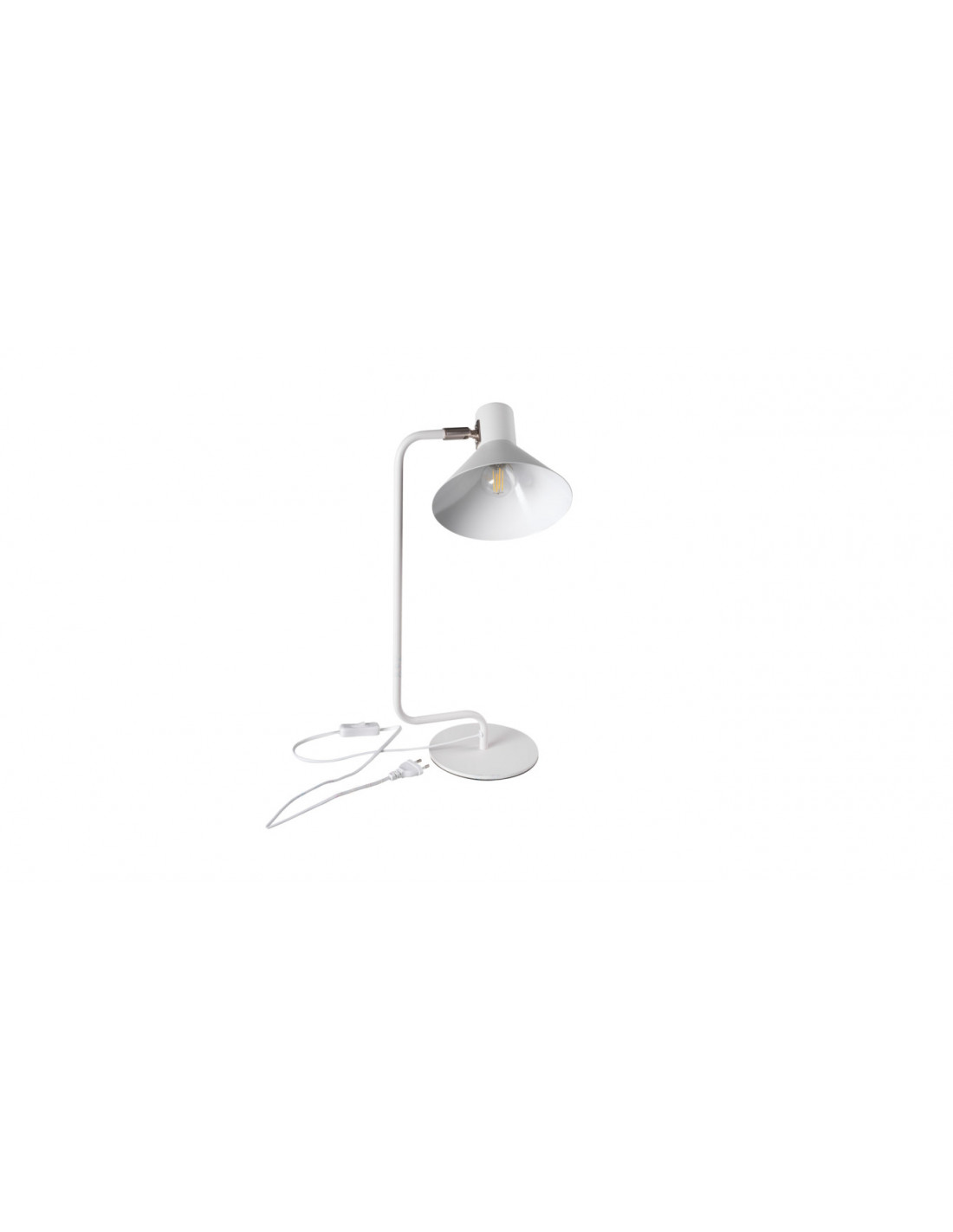 Lampka biurkowa, kolor biały, zasilanie 220-240V~;50Hz, moc max 10W, trzonek E14, regulacja horyzontaslna 320°, regulacja wertykalna 160°; długość przewodu 1,5m; materiał obudpwy: stal; IP 20.