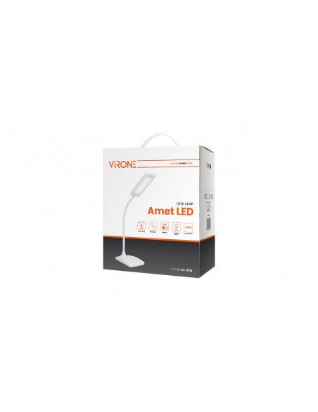 Lampka biurkowa LED z elastycznym, regulowanym ramieniem, które umożliwia wygodną regulację kierunku świecenia. Dotykowy przycisk sterujący oraz funkcja ściemniania (3 stopniowa regulacja intensywności świecenia). Dostępne kolory: biały, czarny.