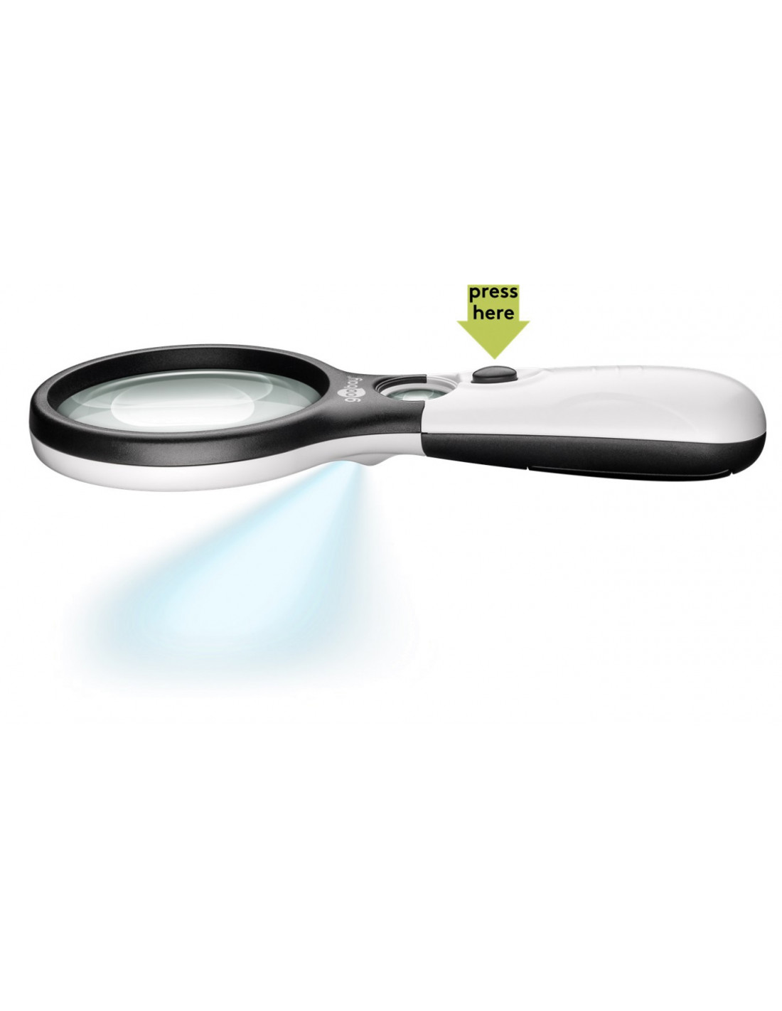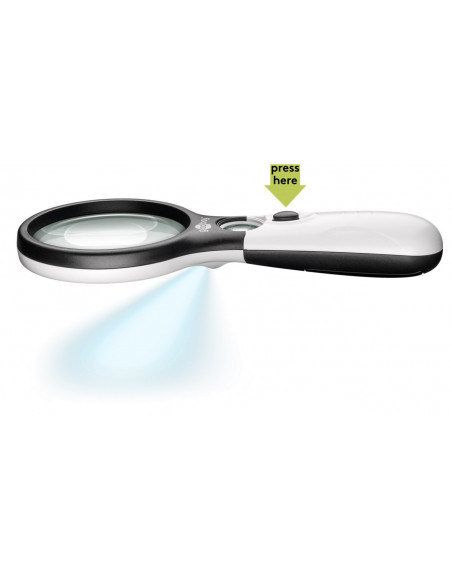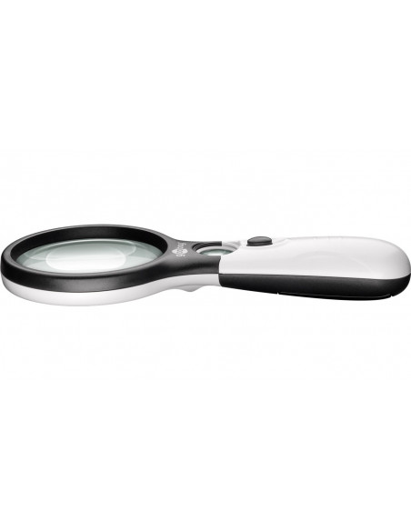 Elektronicznie podświetlana lupa ręczna z 22 mm soczewką ze szkła optycznego o powiększeniu 2x i 12x pozwala dostrzec najdrobniejsze szczegóły.
