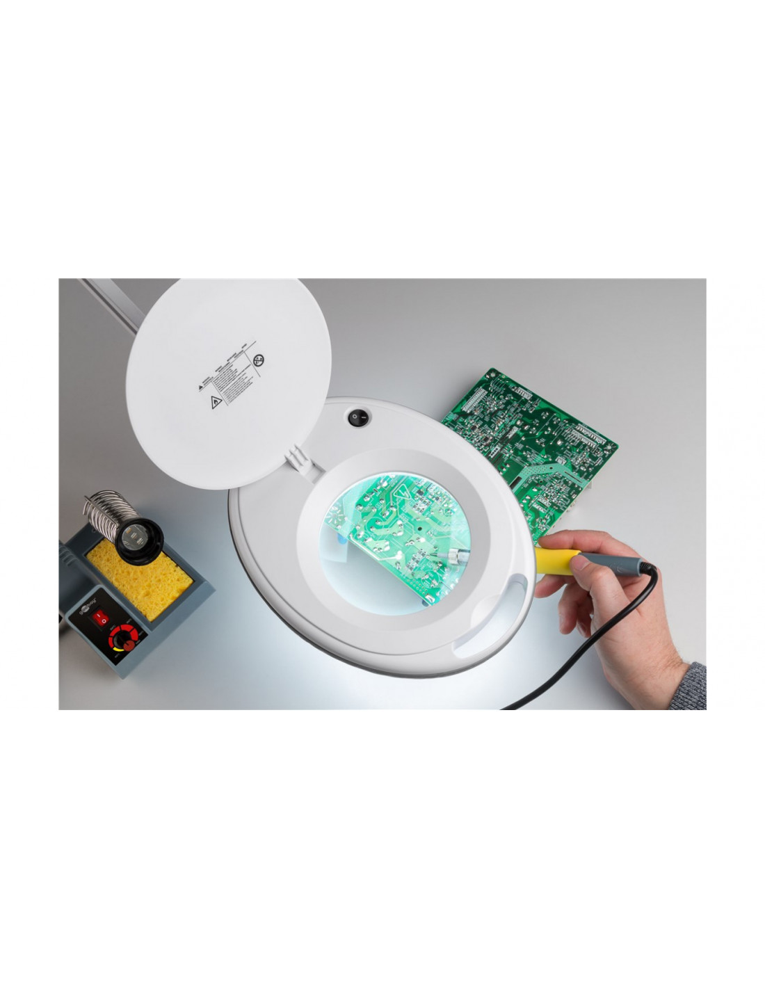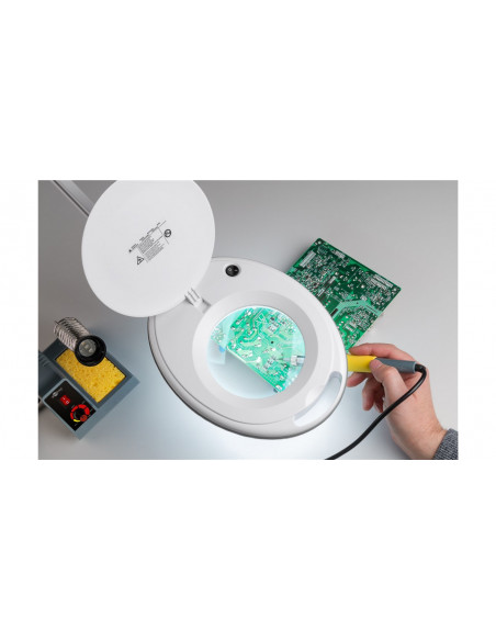 Lupa robocza do uniwersalnego zastosowania, np. w kosmetyce, jako pomoc w czytaniu lub do prac precyzyjnych, takich jak lutowanie i prace ręczne.