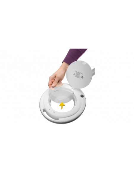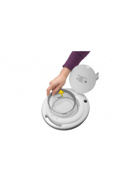 Głowicę lupy można przechylać do 90° i obracać o 360°, dzięki czemu idealnie nadaje się jako lupa stołowa, biurkowa, kreślarska lub do czytania.