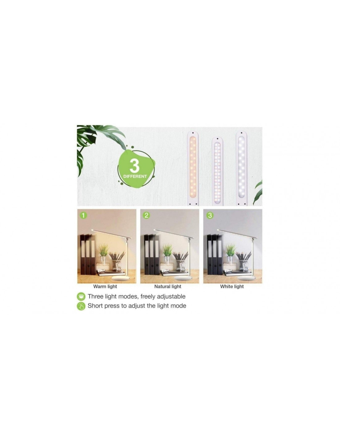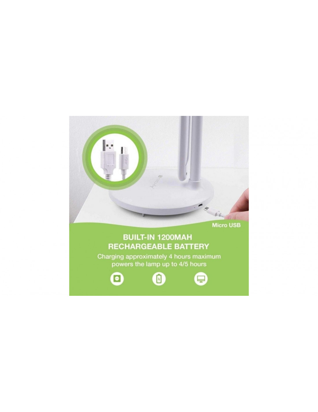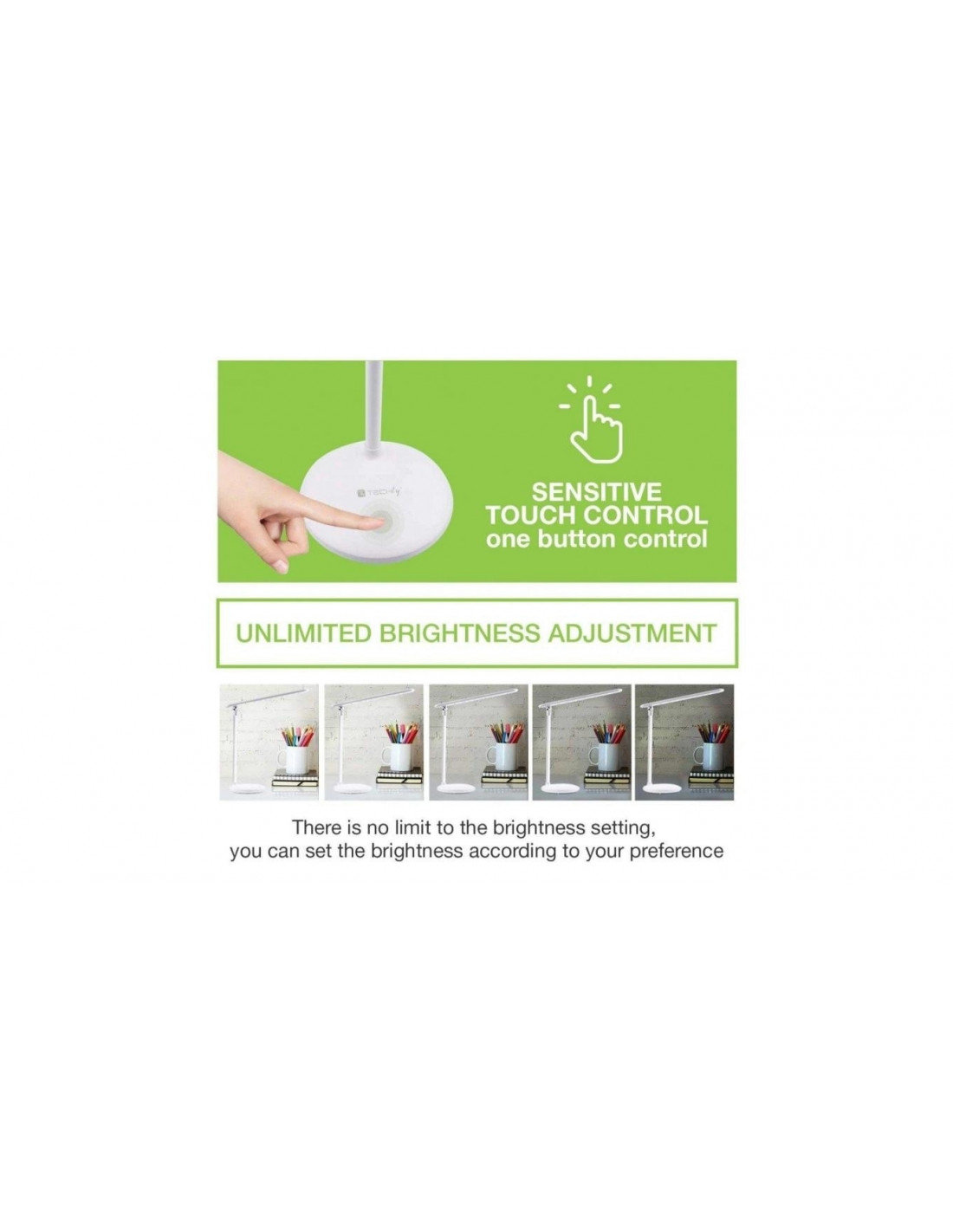 Lampa LED Techly I-LAMP-DSK9, P/N: 365276 – Bezprzewodowa Lampka Biurowa LED 4W, 36x SMD2835, Trzy Barwy Światła, Dotykowa, Ściemniana, Składana Lampka LED Techly - bezprzewodowe źródło światła Nowoczesna, stylowa, elegancka, regulowana… a do tego jeszcze bezprzewodowa! Taka właśnie jest nowa biurkowa lampka LED Techly I-LAMP-DSK9. Nie ważne czy chcesz poczytać książkę w fotelu lub na kanapie, nie ważne czy chcesz szydełkować siedząc na podłodze w ulubionym kąciku, nie ważne czy chcesz odrabiać lekcje w całkowicie absurdalnym miejscu, bezprzewodowa lampka LED Techly zapewni Ci do 4-5 godzin wspaniałego światła bez podłączania do prądu! Światło LED od Techly sterowane dotykiem Wygodnie umieszczony panel dotykowy lampki Techly umożliwia jej włączenie i wyłączenie, szybką zmianę barwy światła oraz płynną zmianę poziomu jasności . Funkcja pamięci sprawia, że po kolejnym włączeniu poziom jasności będzie taki sam jak przed wyłączeniem. Świeć w każdą stronę z lampką LED Techly W zależności od indywidualnych potrzeb konstrukcja lampki umożliwia skierowanie strumienia świetlnego w zasadzie w dowolnym kierunku. Dzięki przegubowemu łącznikowi możesz regulować kąt świecenia o 180° oraz skręcać lampkę na boki również o 180°. Parametry techniczne: Źródło światła: 36 diod SMD2835 Temperatura barwowa: 2800 - 6500K Maksymalna moc strumienia świetlnego: 300 lm Moc znamionowa: 4W Barwa światła: Ciepła biała Zimna biała Światło naturalne Płynna zmiana poziomu jasność (ściemnianie) Regulacja kąta nachylenia: 180° Regulacja skrętu prawo-lewo: 180° Klasa energetyczna: G Pojemność akumulatora: 1200 mAh Czas świecenia: 4-5 godzin Czas ładowania: około 4 godzin Port zasilania: Micro-USB Napięcie zasilania: 5V DC, ≥1A Sterowanie panelem dotykowym Wymiary: Wysokość: 345 mm Długość ramienia LED: 335 mm Średnica podstawy: 150 mm Materiał wykonania obudowy: plastik ABS, metal Waga: 696g Kolor: biały Uwaga: W zestawie nie ma zasilacza. Lampkę można zasilać przy użyciu ładowarki do telefonu, power banku lub z portu USB komputera. Opis produktu: Nowoczesna i stylowa biurkowa lampka LED wyposażona w 36 diod LED SMD2835 Wbudowany akumulator umożliwia do 4-5 godzin świecenie bez dostępu do prądu Wygodny panel dotykowy zapewnia proste sterowanie funkcjami lampki Możliwość zmiany barwy światła pomiędzy ciepłą białą, zimną białą oraz światłem naturalnym Płynna zmiana poziomu jasności świecenia ( bez efektu mrugania ) z poziomu panelu dotykowego Lampka LED wyposażona w funkcję pamięci po wyłączeniu poziomu natężenia światła Regulacja kąta nachylenia oraz skrętu prawo-lewo o 180° Idealna do zastosowania jako lampka biurowa, lampka nocna oraz lampka do prac precyzyjnych Wykonana z eleganckich, przyjemnych w dotyku materiałów W zestawie nie ma zasilacza, lampkę można ładować przy użyciu ładowarki do telefonu, power banku lub portu USB komputera Gwarancja 2 lata Zawartość opakowania: Bezprzewodowa lampka LED 4W Techly Przewód zasilający Micro-USB Instrukcja