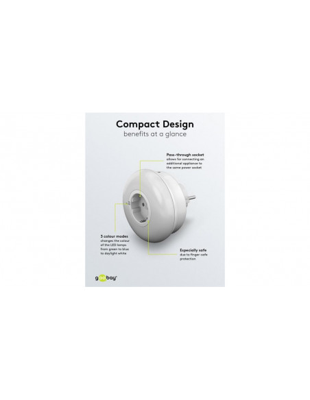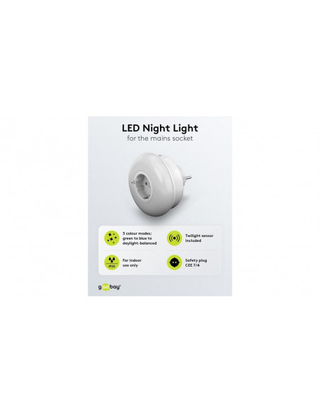 Wykonana z wytrzymałego tworzywa sztucznego lampka nocna LED ma stopień ochrony IP20 i jest przeznaczona wyłącznie do użytku wewnątrz pomieszczeń.