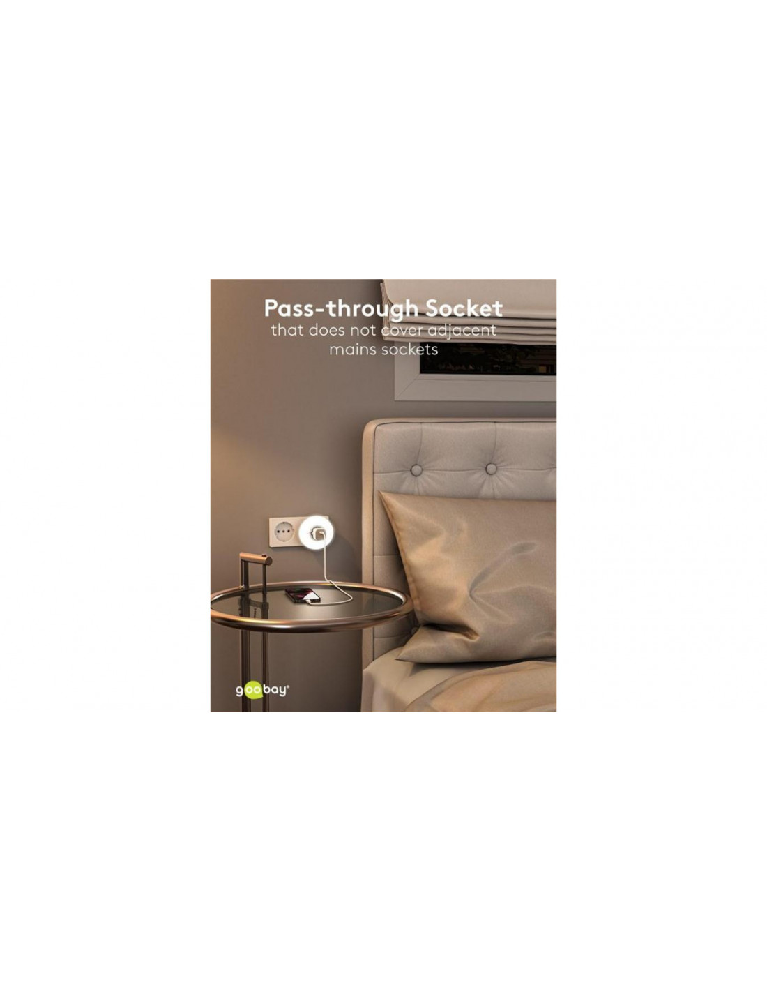 Dzięki kompaktowej konstrukcji o wymiarach 82 x 82 x 72 mm lampa LED nie zasłania sąsiednich gniazdek.