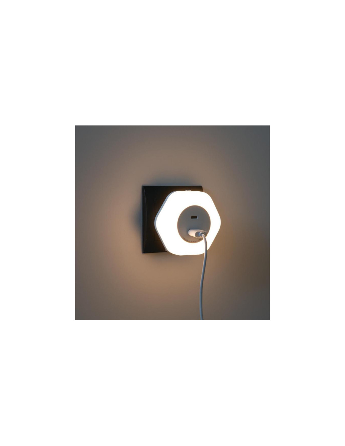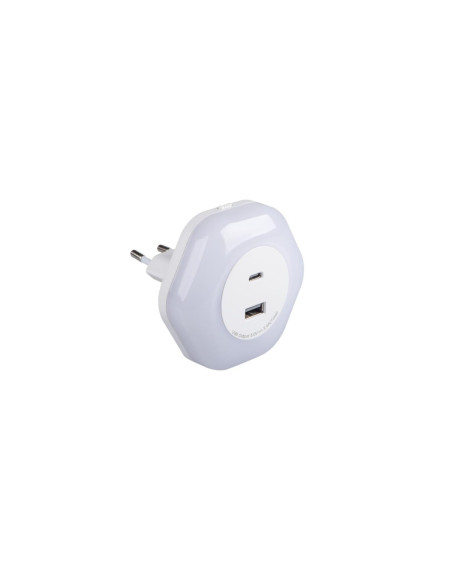 Lampka wtykowa LED, Długość [mm]: 77, Szerokość [mm]: 81, Wysokość [mm]: 76, Barwa światła: ciepłobiała, Częstotliwość znamionowa [Hz]: 50, Ilość cykli wł/wył: 15000, Jednolitość barw [SDCM]: 6, Klasa ochronności przed porażeniem elektrycznym: II, Kolor: biały, Materiał klosza: PC, Materiał obudowy: PC, Miejsce montażu: gniazdo zasilające, Miejsce zastosowania: wewnątrz, Moc maksymalna [W]: max 15, Możliwość współpracy ze ściemniaczem: nie, Napięcie znamionowe [V]: 220-240 AC, Rodzaj diody: LED SMD, Stopień IP: 20, Strumień świetlny oprawy [lm]: 4 (0,22W), Temperatura barwowa [K]: 3000, Włącznik: 1.