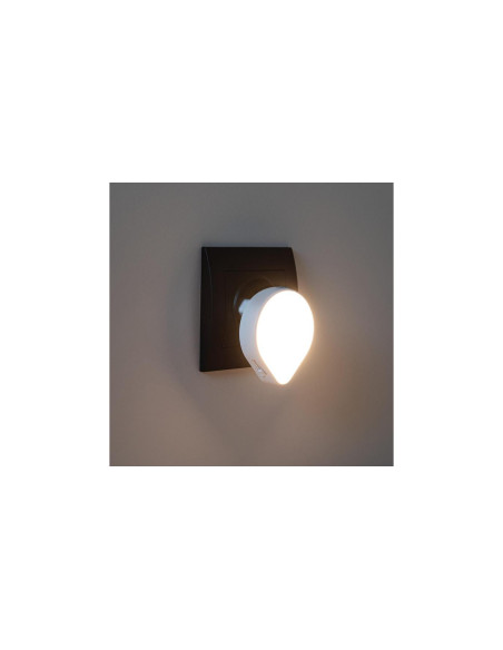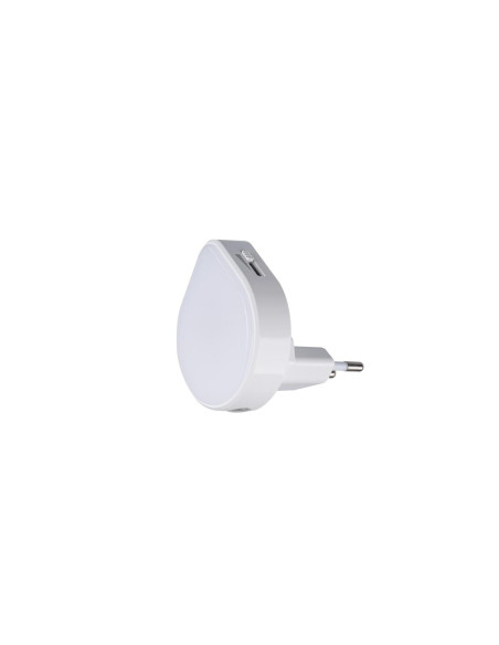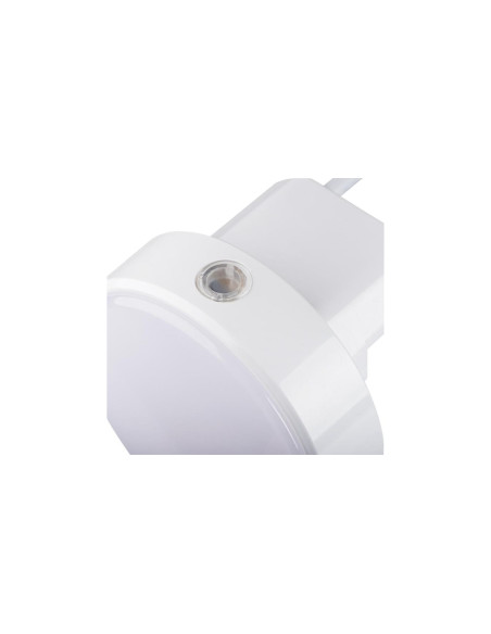 Lampka wtykowa LED, Długość [mm]: 55, Szerokość [mm]: 63, Wysokość [mm]: 64, Barwa światła: ciepłobiała, Częstotliwość znamionowa [Hz]: 50, Jednolitość barw [SDCM]: 6, Klasa ochronności przed porażeniem elektrycznym: II, Kolor: biały, Materiał klosza: tworzywo sztuczne, Materiał obudowy: tworzywo sztuczne, Miejsce montażu: gniazdo zasilające, Miejsce zastosowania: wewnątrz, Moc maksymalna [W]: 0,5, Możliwość współpracy ze ściemniaczem: nie, Napięcie znamionowe [V]: 220-240 AC, Rodzaj diody: LED SMD, Stopień IP: 20, Strumień świetlny oprawy [lm]: 1-30, Temperatura barwowa [K]: 3000.