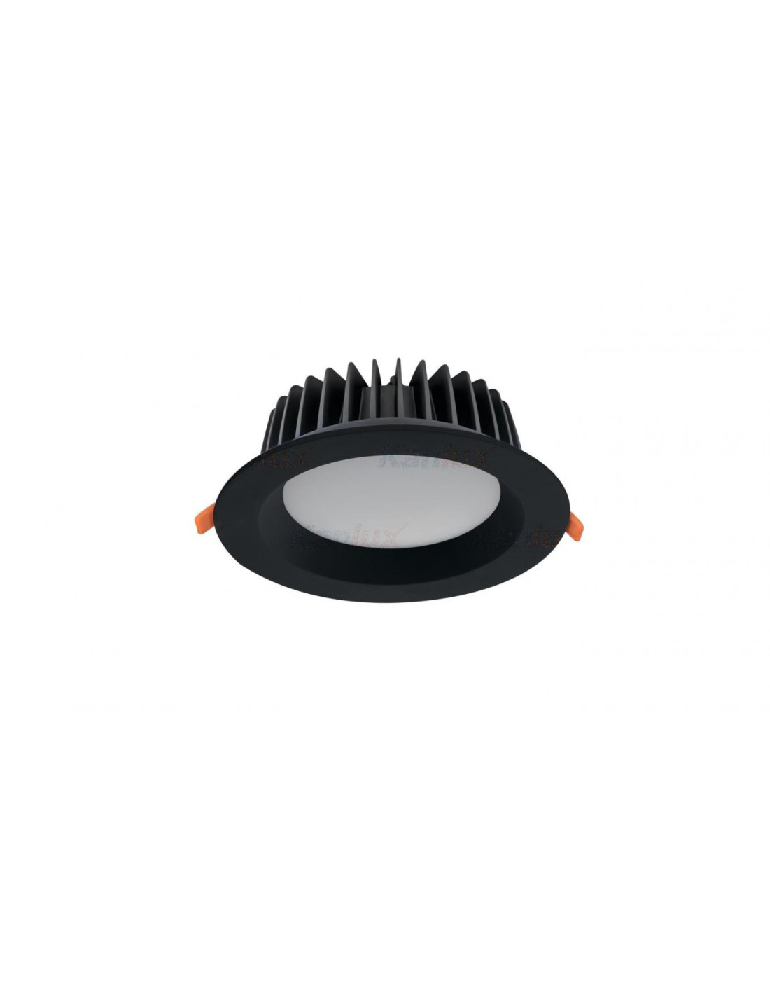 Oprawa typu downlight LED, zasilanie 220-240V AC, 50Hz, moc 40W, źródło światła LED SMD (w komplecie), Tc 4000K, strumień świetlny 3800lm, kąt rozsyłu światła 90°, trwałość źródła światła 50000h, ilość cykli wł/wył: 30000; IP 44/20; materiał obudowy: stop aluminium; materiał klosza: tworzywo sztuczne; kolor: czarny.