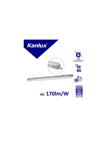 Oprawa pyłoszczelna LED, Długość [mm]: 1200, Szerokość [mm]: 75, Wysokość [mm]: 75, Barwa światła: biała, Częstotliwość znamionowa [Hz]: 50, Ilość cykli wł/wył: ≥80000, Ilość dławic: 2, Jednolitość barw [SDCM]: 6, Kąt świecenia [°]: 110, Klasa ochronności przed porażeniem elektrycznym: I, Kolor: szary, Materiał klosza: PC, Materiał obudowy: PC, Miejsce montażu: do nadbudowania na suficie, Miejsce montażu: do nadbudowania na ścianie, Miejsce zastosowania: wewnątrz i na zewnątrz, Minimalna odległość od oświetlanego obiektu: 0,5m, Moc maksymalna [W]: 38; 34,5; 27,5; 22, Możliwość łączenia przelotowego opraw: 1, Możliwość współpracy ze ściemniaczem: nie, Napięcie znamionowe [V]: 220-240 AC, Rodzaj diody: LED SMD, Rodzaj przyłącza: kostka samozaciskowa, Stopień IK: 08, Stopień IP: 65, Strumień świetlny oprawy [lm]: 6100; 5600; 4550; 3750, Temperatura barwowa [K]: 4000, Trwałość [h]: 50000, Współczynnik oddawania barw Ra: 80, Zakres przekrojów stosowanych przewodów [mm2]: 1÷2,5, Zakres temperatury otoczenia, na którą może być narażony wyrób [°C]: -20÷40, Zintegrowane źródło światła LED: 1, Zastosowana technologia oświetleniowa: LED, Bezkierunkowe lub kierunkowe źródło światła: NDLS, Źródło światła zasilane lub niezasilane napięciem sieciowym: NMLS, Połączone źródło światła (CLS): nie, Źródło światła z możliwością zmiany barwy światła: nie, Źródło światła o wysokiej luminancji: nie, Osłona przeciwolśnieniowa: nie, Funkcja ściemniania: nie, Źródło światła LED zastępuje fluorescencyjne źródło światła bez wbudowanego statecznika: nie dotyczy, Współrzędne chromatyczności (x): 0,38, Współrzędne chromatyczności (y): 0,38.
