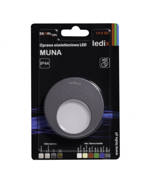 Zalety:-strumień świetlny emitowany na 2 płaszczyzny: dolną oraz przednią-światłowód emitujący promieniowanie świetlne-rozbudowana funkcjonalność-nowatorski design nawiązujący do motywu koła-możliwość montażu w ciągach komunikacyjnych-dostępność różnych wersji kolorystycznych korpusu i emitowanego światła