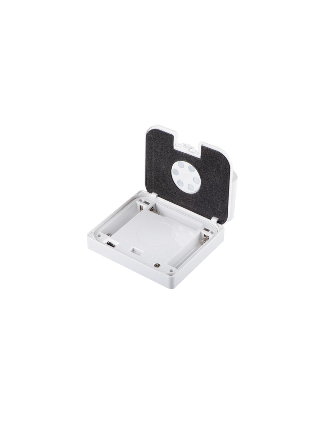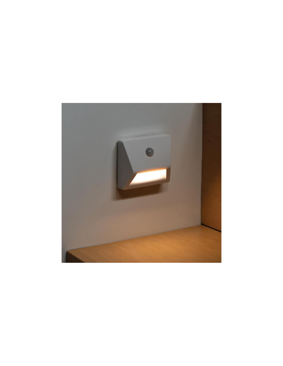 Oprawa przyschodowa LED na baterie, Długość [mm]: 28, Szerokość [mm]: 84, Wysokość [mm]: 73, Barwa światła: biała, Czas działania czujnika [sekunda-minuta]: 20--, Klasa ochronności przed porażeniem elektrycznym: III, Kolor: biały, Materiał klosza: tworzywo sztuczne, Materiał obudowy: tworzywo sztuczne, Miejsce montażu: do nadbudowania na ścianie, Miejsce zastosowania: wewnątrz, Minimalna odległość od oświetlanego obiektu: 0,1m, Moc maksymalna [W]: 0.3, Możliwość współpracy ze ściemniaczem: nie, Napięcie znamionowe [V]: 3 x 1,5 DC, Rodzaj czujnika: PIR, Skuteczność świetlna lampy [lm/W]: 33, Stopień IP: 54, Strumień świetlny oprawy [lm]: 10, Temperatura barwowa [K]: 4000, Trwałość [h]: 25000, Współczynnik oddawania barw Ra: 80, Wykrywanie ruchu: tak, Zakres temperatury otoczenia, na którą może być narażony wyrób [°C]: 0÷25, Zasięg czujnika [m]: max 5.