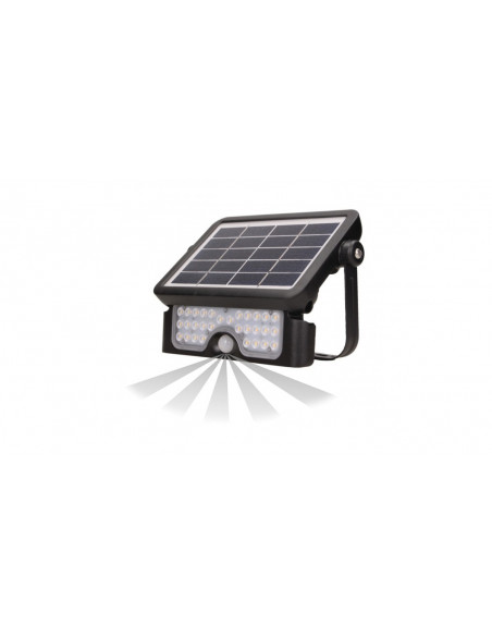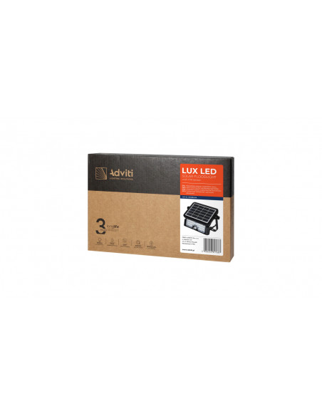 Naświetlacz LUX LED wyposażony w monokrystaliczny, wodoodporny i bardzo wydajny panel fotowoltaiczny, który służy do ładowania wbudowanego akumulatora litowo-jonowego 3000mAh, nawet w pochmurne dni i podczas zimy. Źródłem światła są diody LED SMD, które emitują światło o naturalnej białej barwie. Takie światło często wykorzystywane jest do oświetlenia elewacji lub ogrodu, dlatego ten naświetlacz świetnie sprawdzi się na zewnątrz, jako oświetlenie parkingu, posesji, fasad, reklam, domków letniskowych, altan, itp. Prezentowany naświetlacz działa z mocą 5 W i 500 lm. Świeci naturalną białą barwą światła o temperaturze 4000K. Wysoki stopień szczelności IP65 zapewnia odporność na zakurzenie, zapylenie i kontakt z wodą oraz gwarantuje odporność na każde warunki atmosferyczne. Urządzenie posiada automatyczny układ włączający oświetlenie po zmroku oraz wbudowany czujnik ruchu PIR, który reaguje w chwili pojawienia się ruchu. Maksymalny zasięg detekcji wynosi do 6 metrów. Montaż naświetlacza jest łatwy i prosty, a samo urządzenie nie wymaga żadnej kalibracji i gotowe jest do użytku zaraz po podłączeniu. Uchwyt naświetlacza regulowany jest w zakresie 360°, a moduł LED – w zakresie 135°.