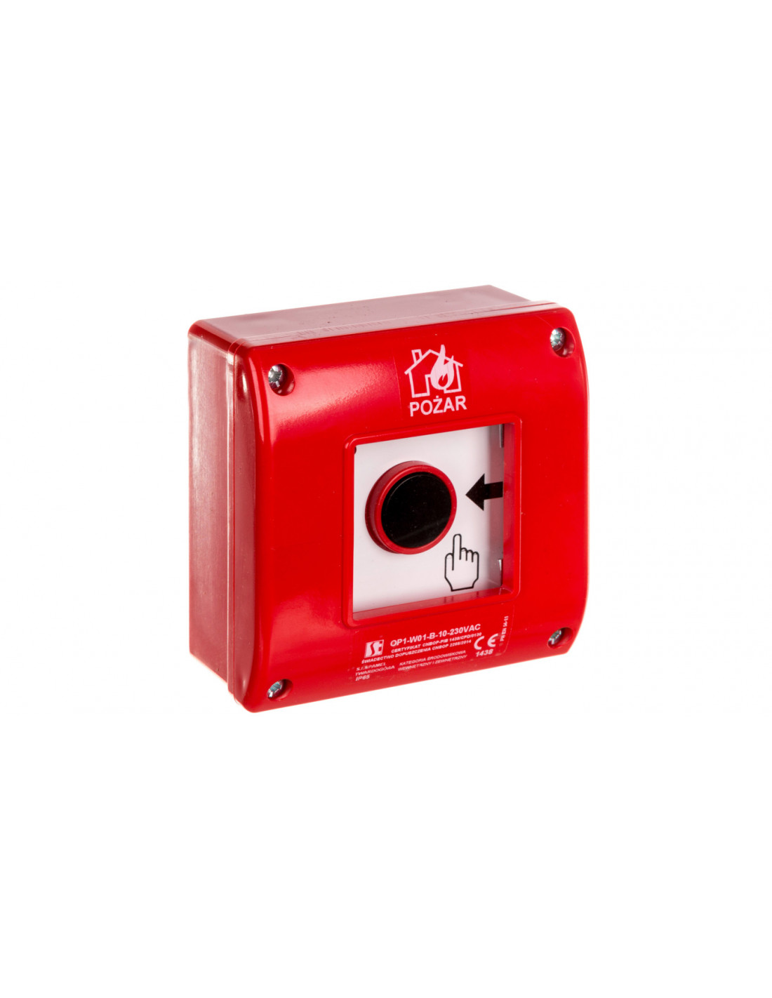 Ręczny ostrzegacz przeciwpożarowy natynkowy, styk 1Z+LED 230V AC OP1-W01-B10-230