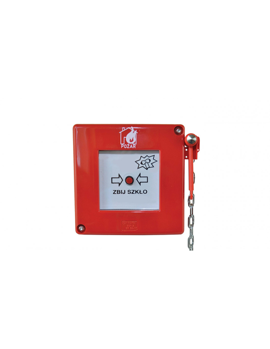 Ręczny ostrzegacz pożarowy ROP z młoteczkiem, bez sygnalizacji, styki XY.